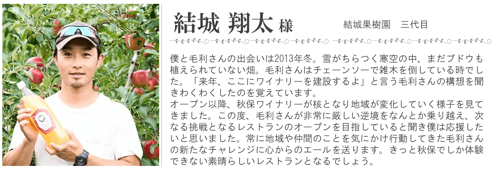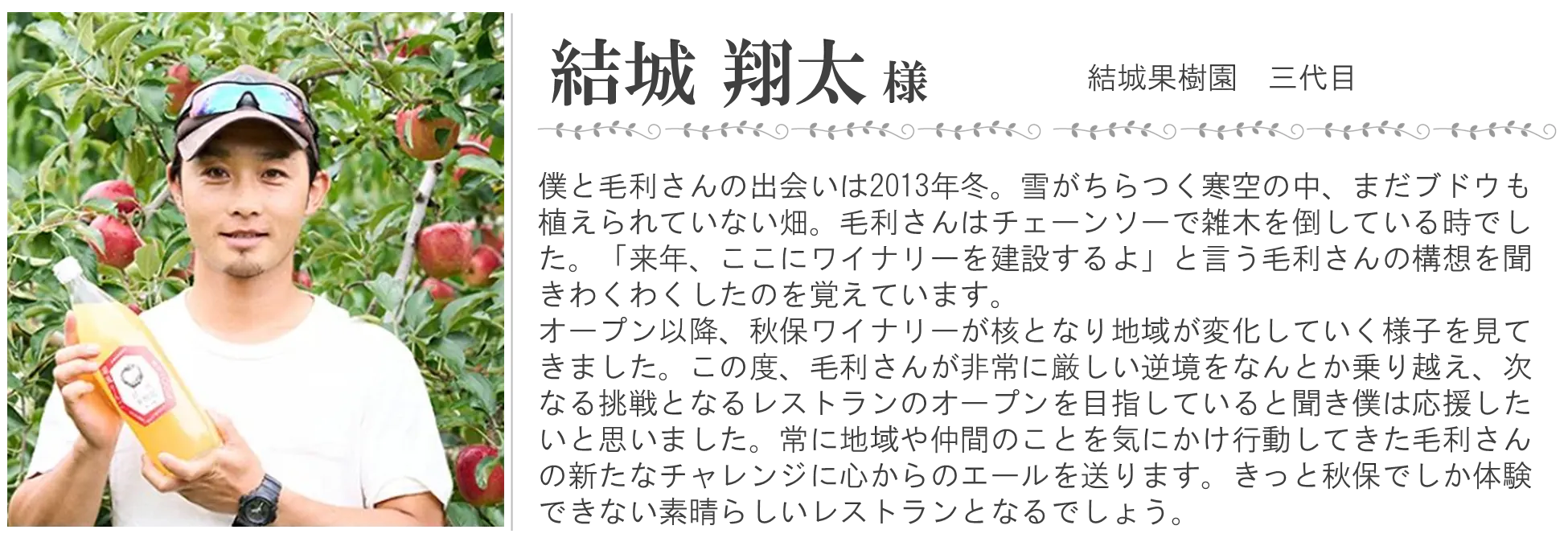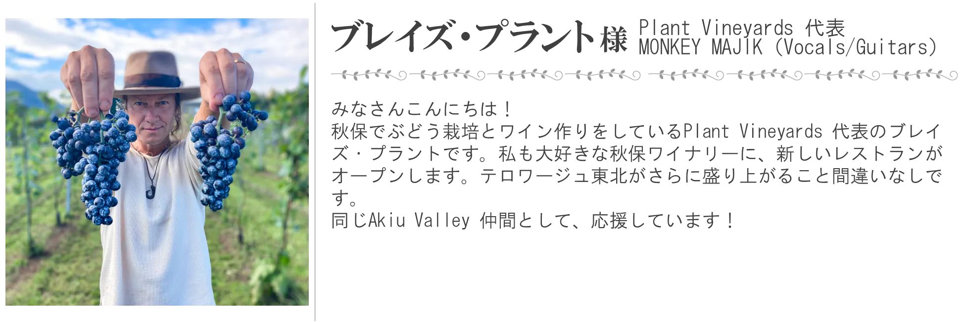 多くの方々の支えにより、ワイナリー事業を軌道に乗せることができました。しかし、私が目指しているのは、東北の魅力を世界中の方々に知ってもらい、今まで以上に東北にお客様がお越しになり、地域経済が潤っていくことです。この道のりは、まだまだ序章にすぎません。