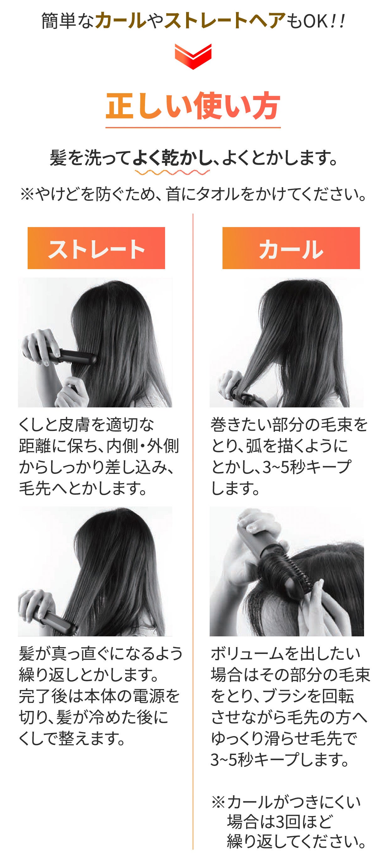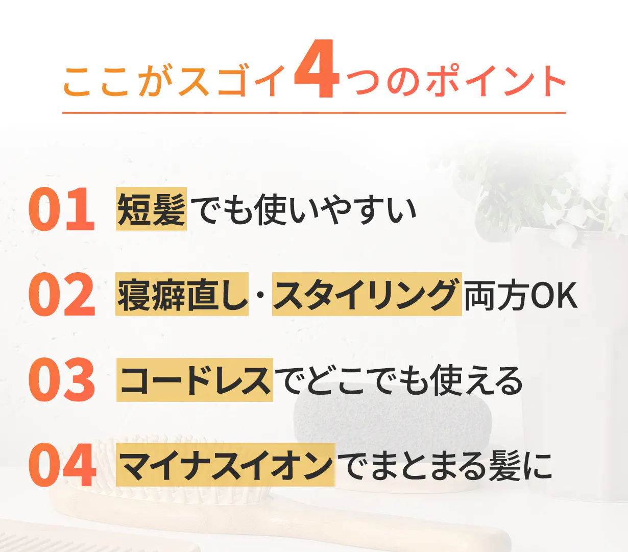 - 【ブラシ型】不器用さんでもとかすだけで寝癖直しからスタイリングもできる!やけど防止設計も嬉しい