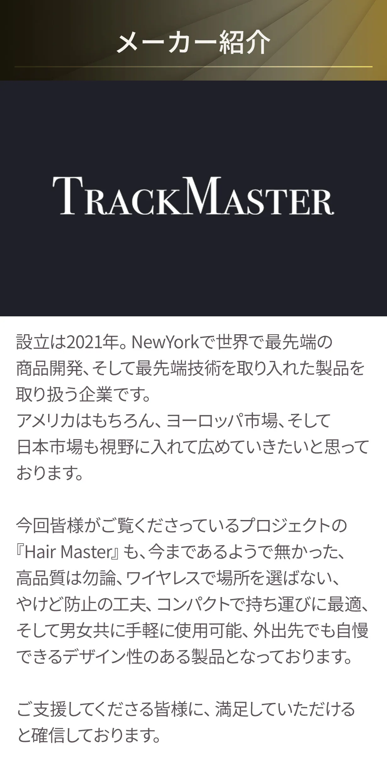※リターン品の配送が完了するまで、SAKURAYA_MIIKO(実行者)はTrackMaster Co.(メーカー)の日本における独占販売権を有する正規代理店です。