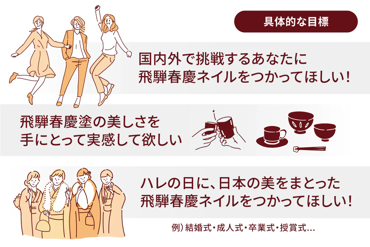このプロジェクトで実現したいのは「飛騨春慶ネイルをハレの場で使ってもらう」こと