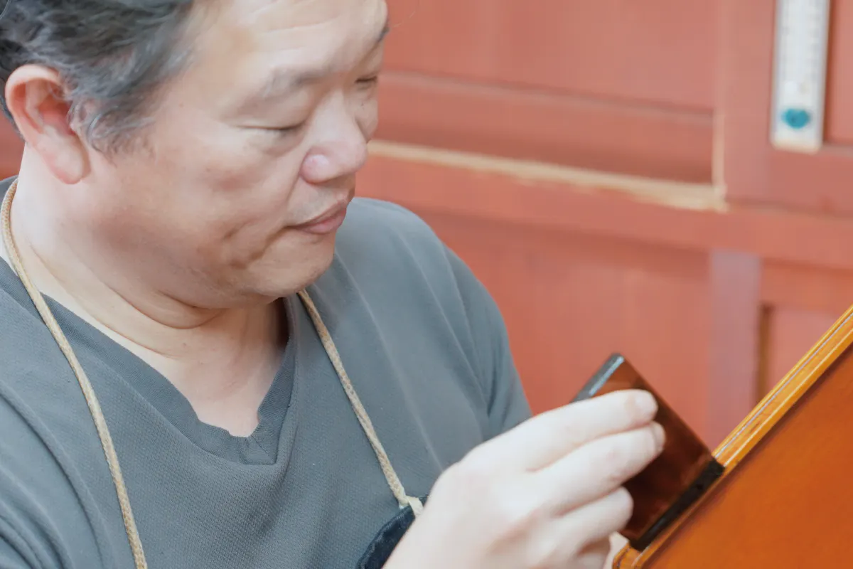 ネイリストである私が着目したのが自分が生まれ育った飛騨高山の伝統工芸「飛騨春慶塗(ひだしゅんけいぬり)」。飛騨春慶塗を学ぶために工房を訪れ、そこで伝統工芸士/塗師(ぬし)職人の川原さんに出会い、この活動は始まりました。