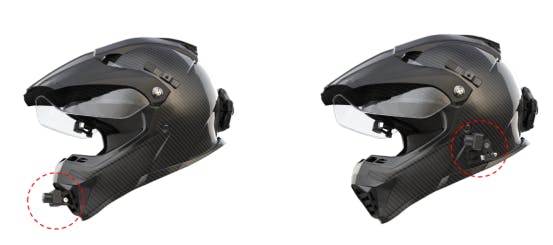 2つのヘルメットで本製品を交互に使用したい場合は、【交換用ヘルメット取付マウント】をご購入いただき、別のヘルメットに装着することで、本体を取り外して別のヘルメットに付け替えることができます。