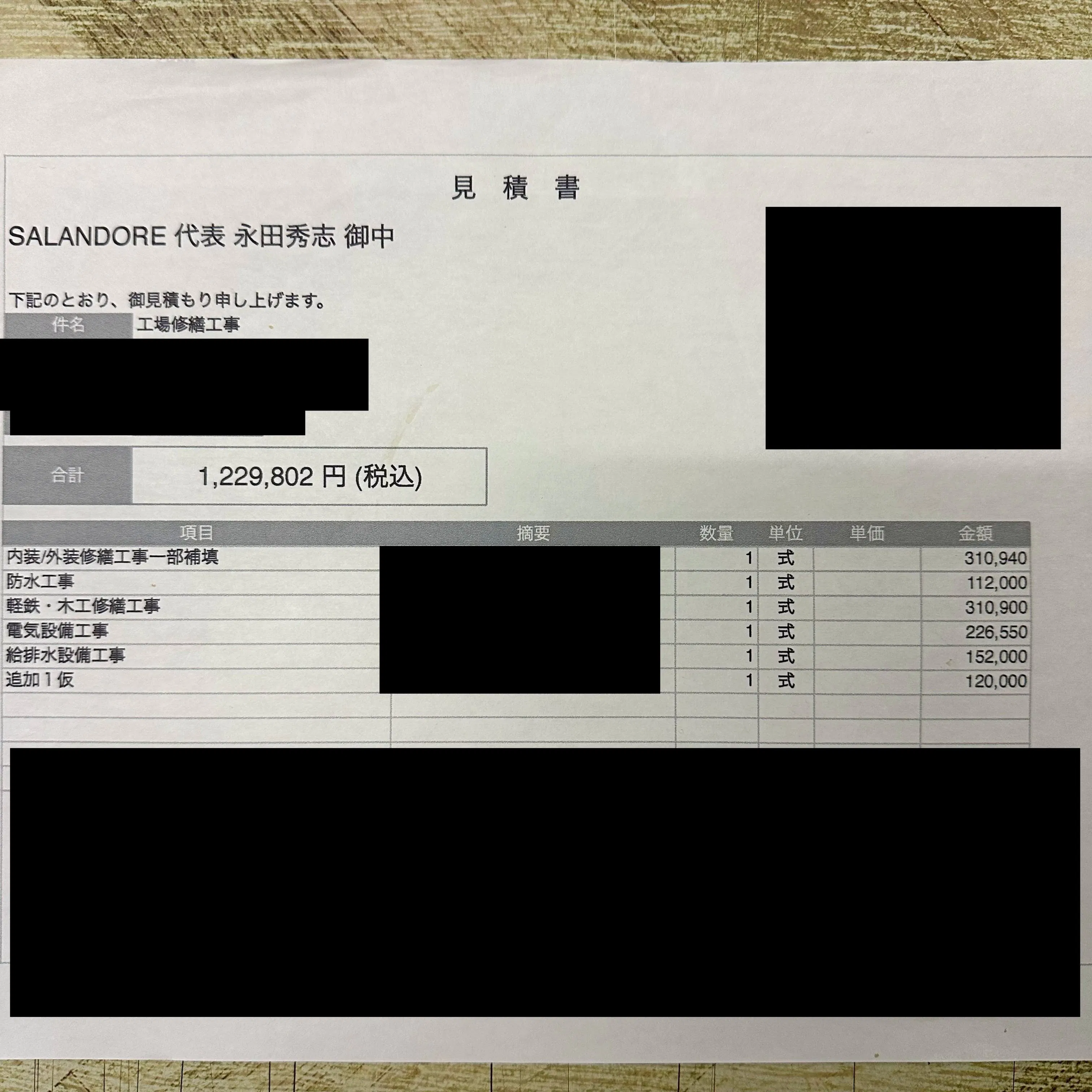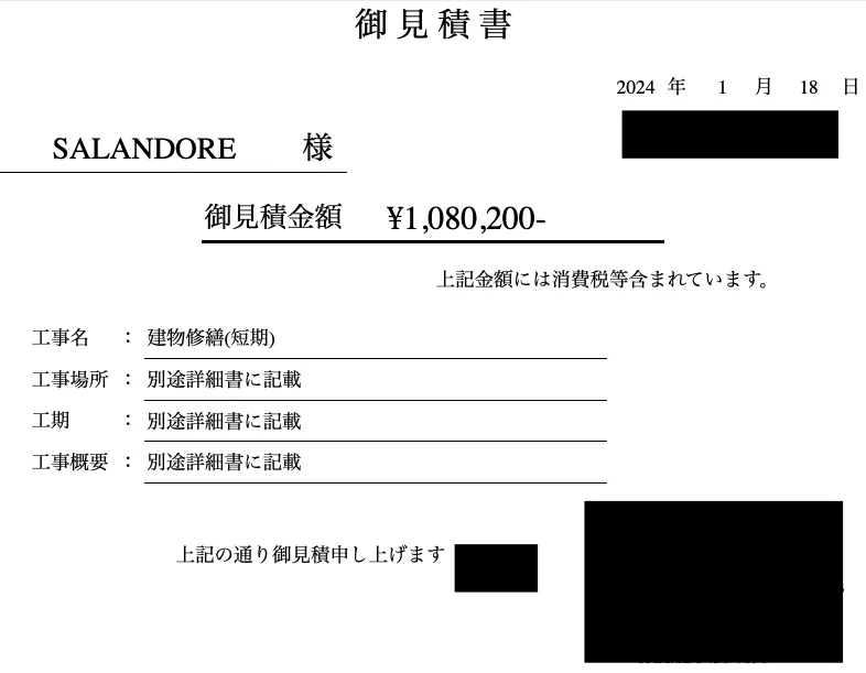まだ工事業者の決定に至っていないため、必要に応じて黒塗りしております。