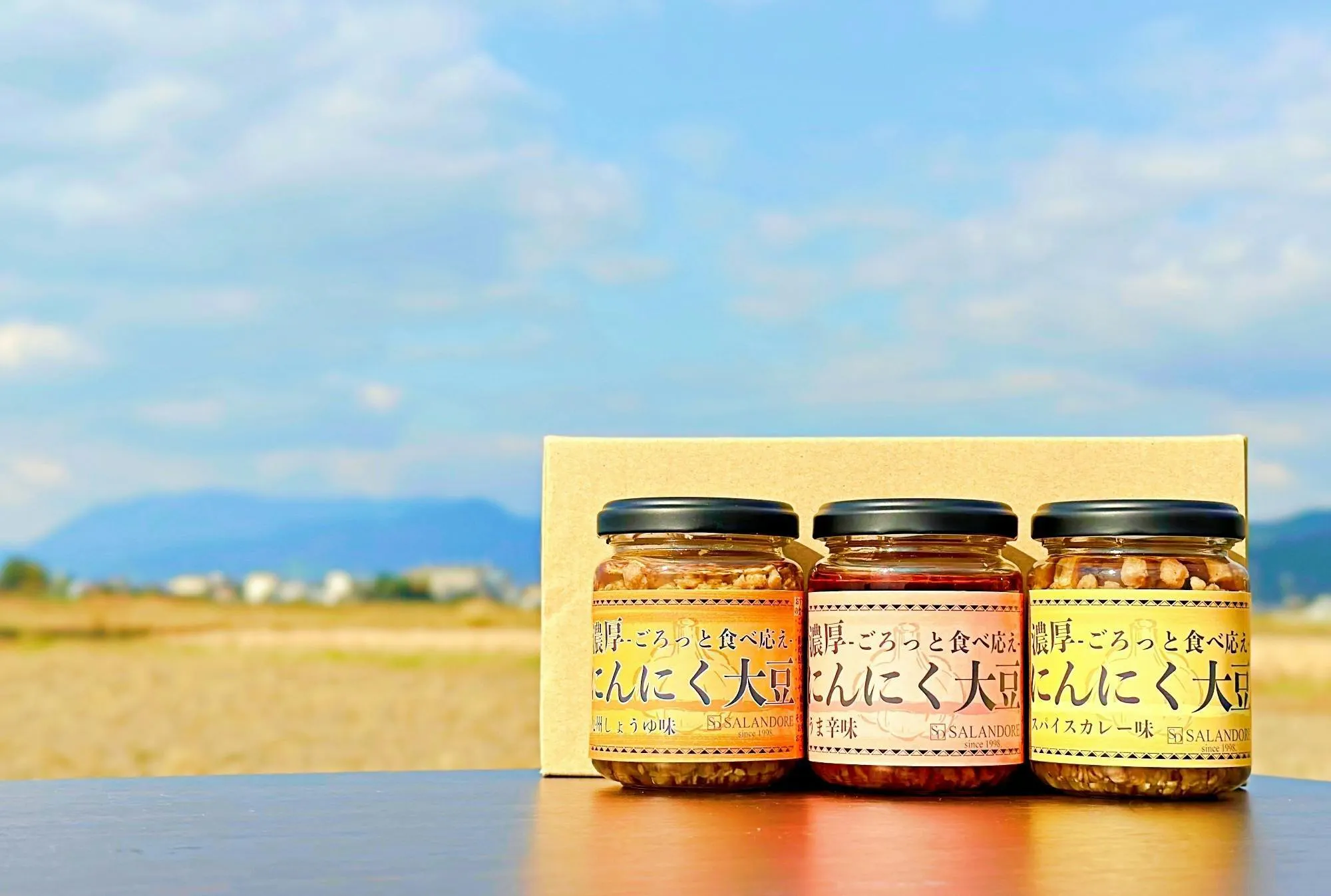 ●濃厚にんにく大豆(九州しょうゆ味、スパイスカレー味、うま辛味)