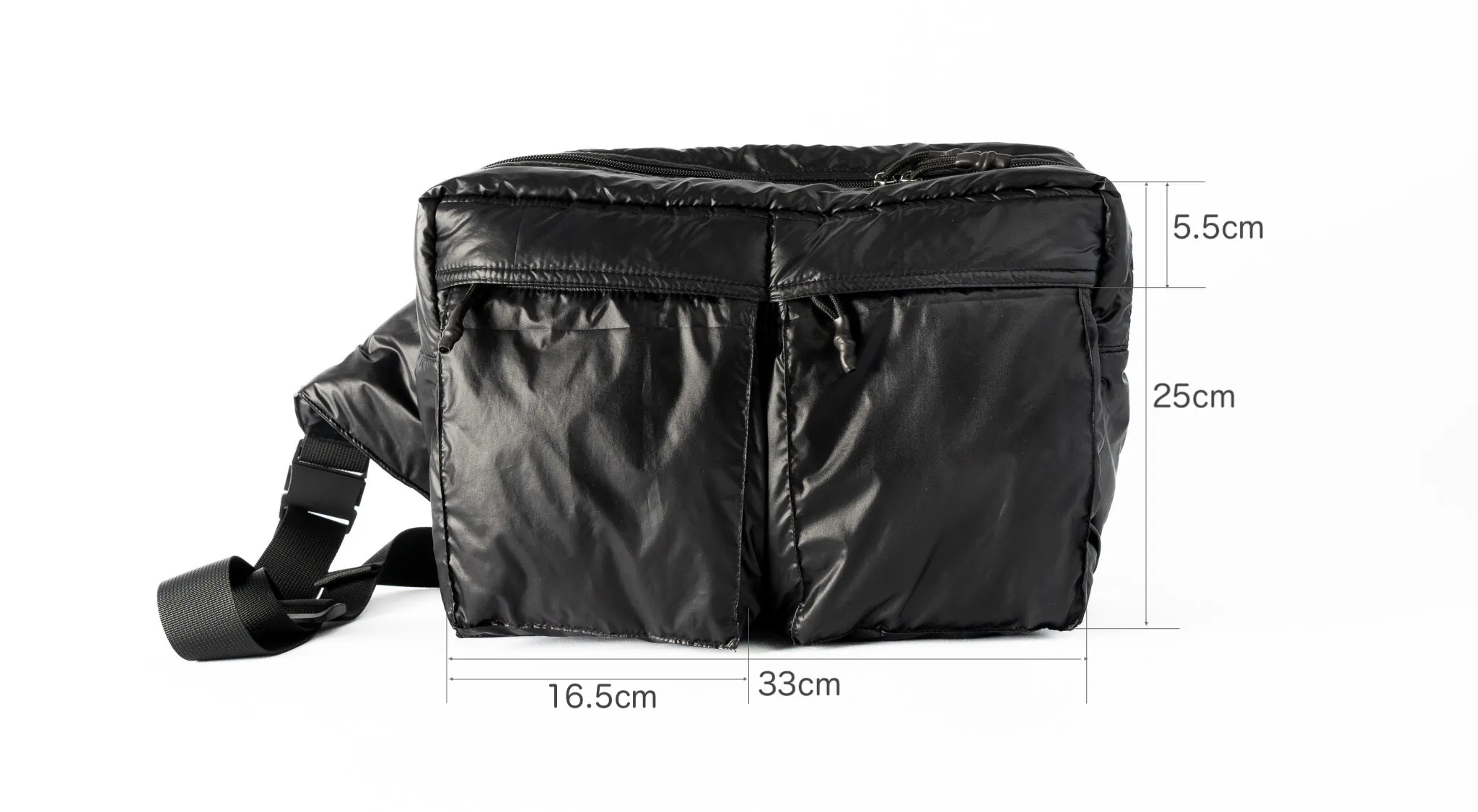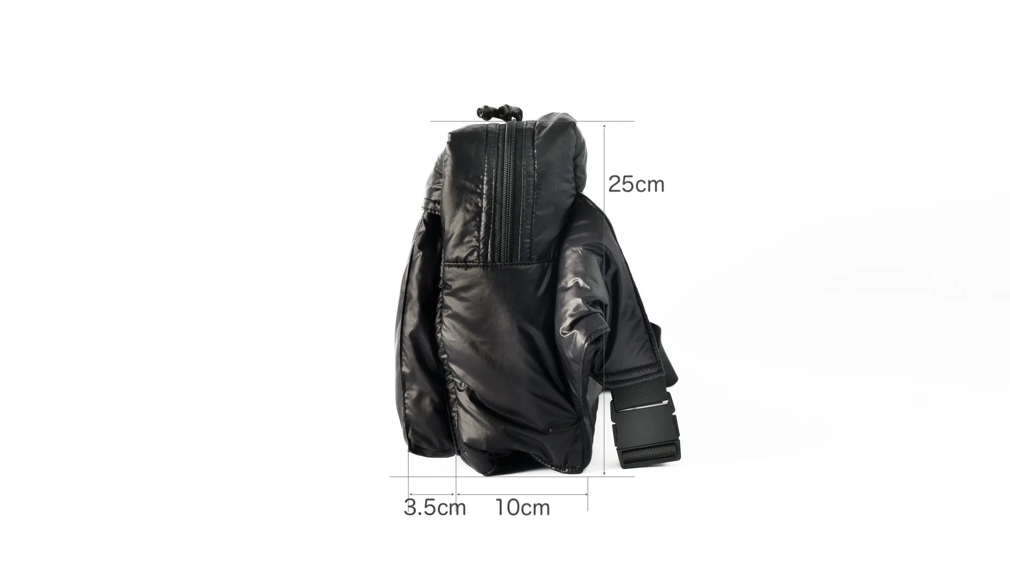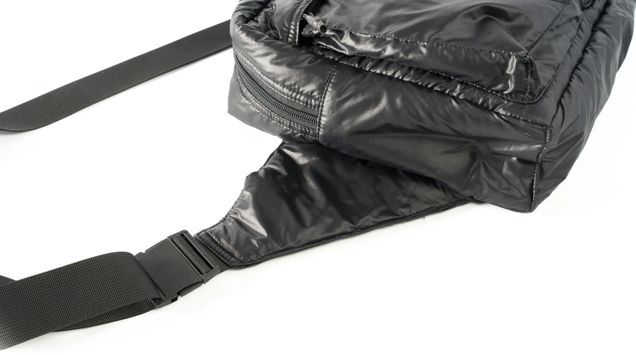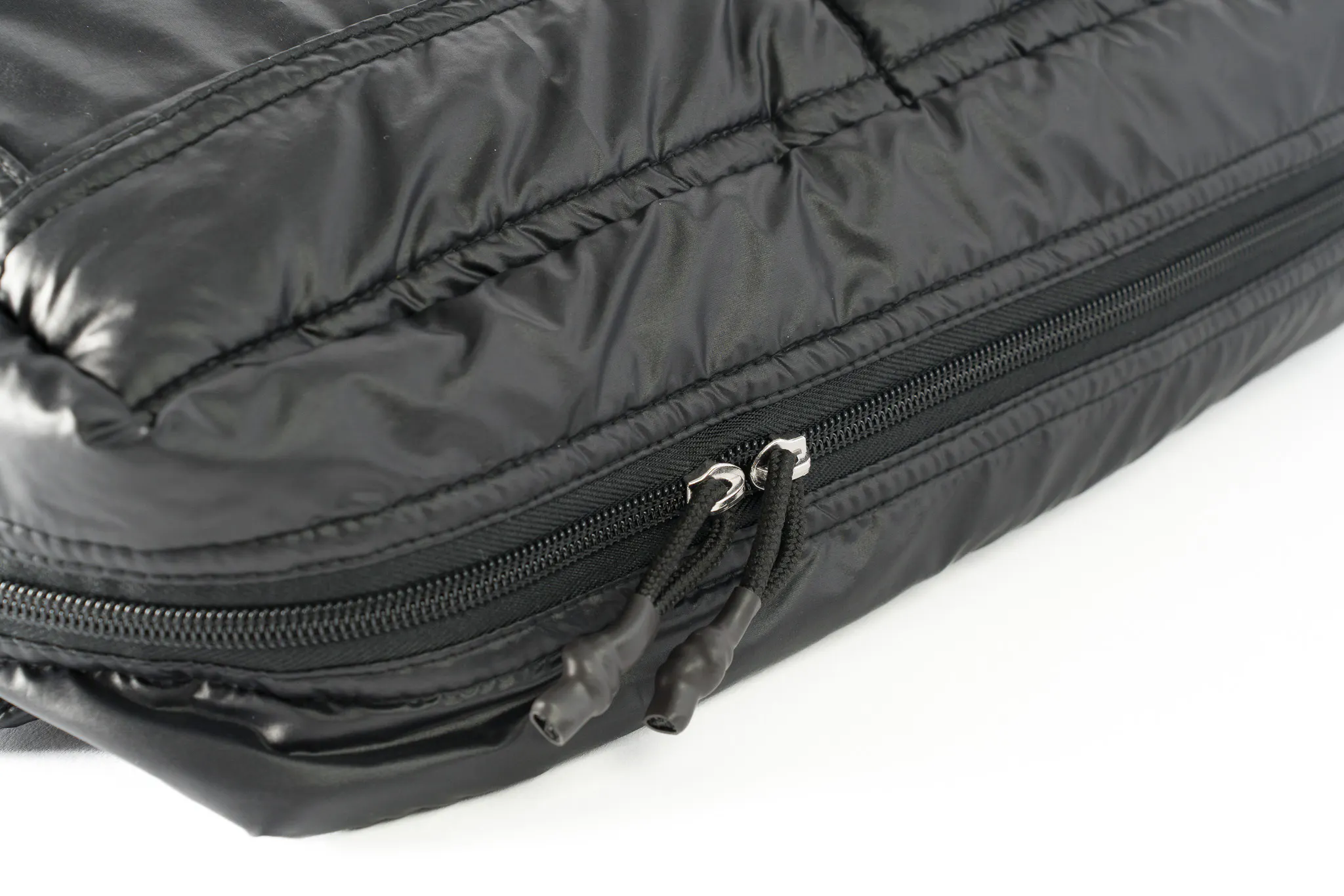 まずわたしたちが追求したのはスリングバッグ本体の軽さ。雨や汚れにも強くてお手入れも簡単。そして強度も兼ね備えた生地を探し求めた結果、行き着いたのは中綿入りのポリエステル素材でした。