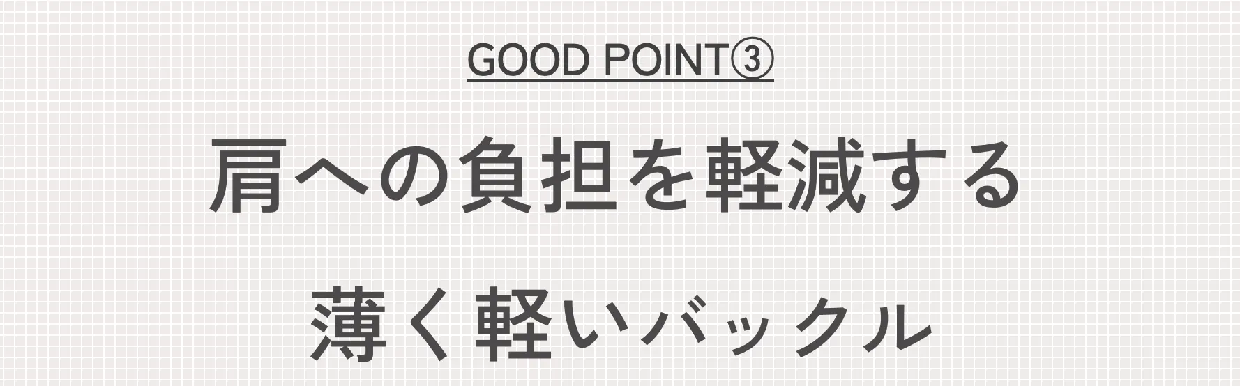 幅は3.8cmと安定感がありながら薄めのバックルを採用することで、体に当たった際の負荷を軽減。長時間の使用を念頭に設計しています。