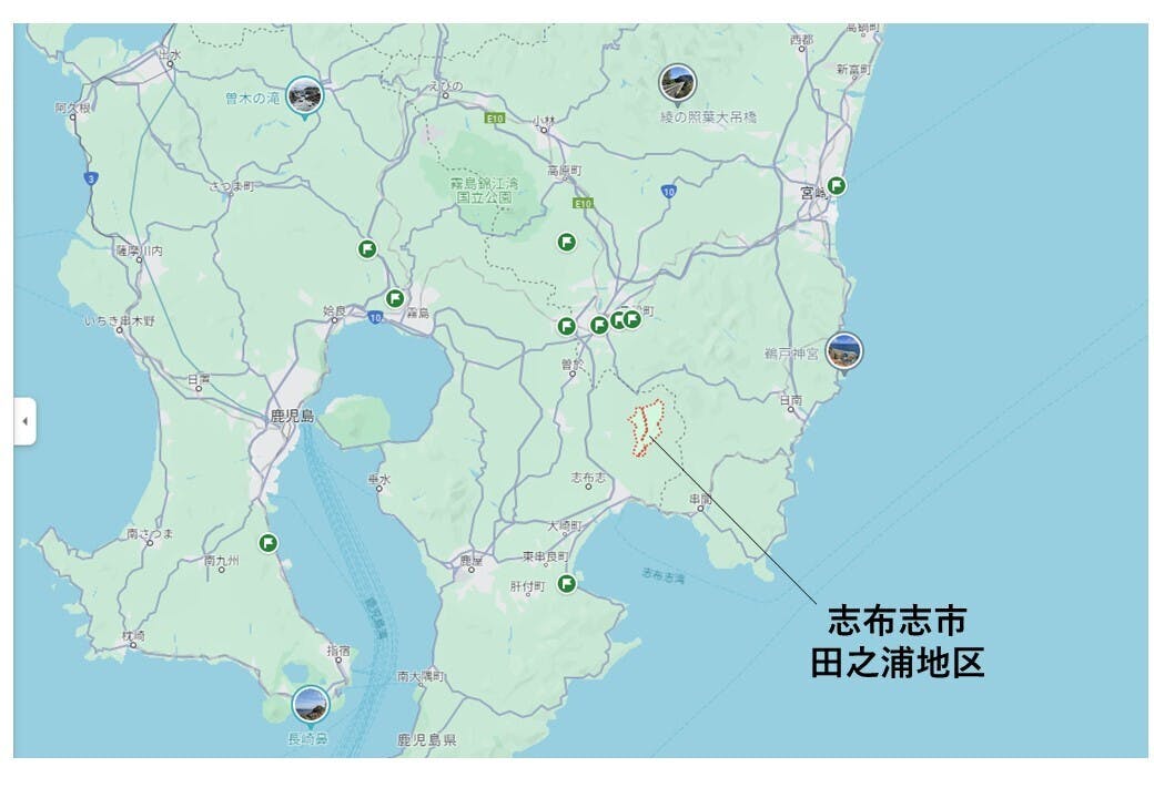 田之浦地区は、本社(菱田蒸溜所)から車で30分ほどの山あいにあります。