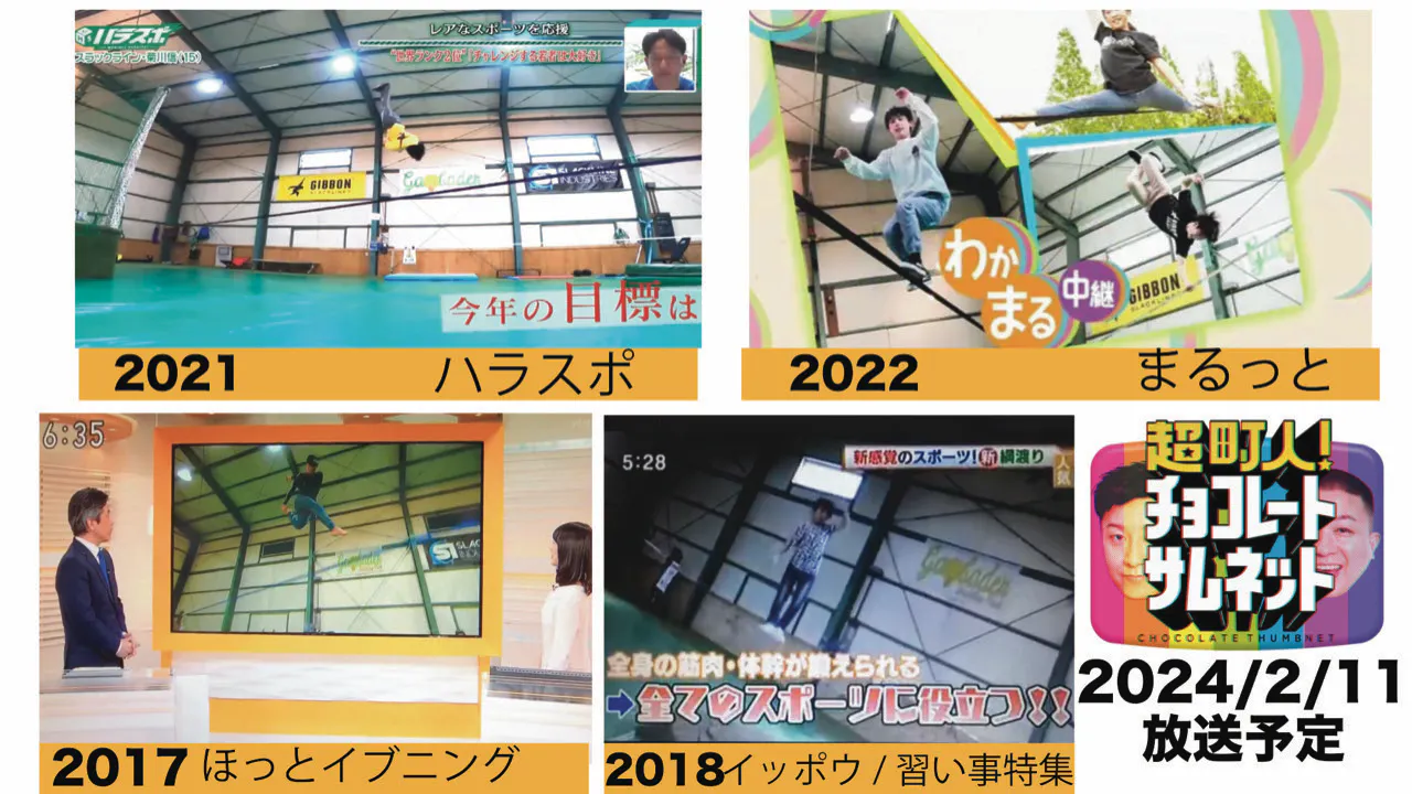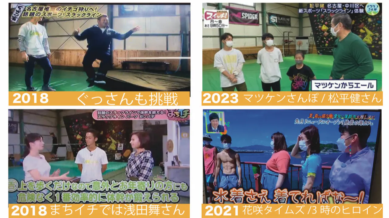 スラックラインのプロの選手の輩出や、様々なスポーツ選手の練習•成長場所としてご利用いただいてます。また、遊び場としてたくさんの子ども•大人の方も遊んでいただいてます。プロアスリートの方にも来店していただきいい施設だとお墨付きをもらってます!さらにメディアへの出演も幾度と受けてきました!