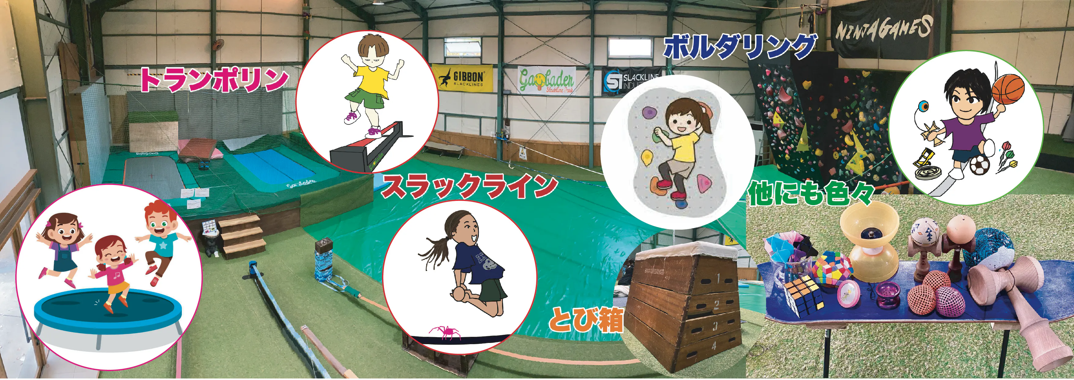 スラックライン教室、トランポリン教室、パルクール教室などこどもの習い事として運営もしており、楽しいから習って上手になりたいという子から、選手として活躍したいという子ども達まで様々な子の将来の夢も背負っております。