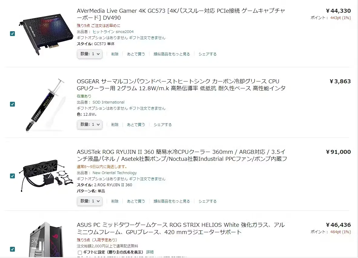 3Dで動くための機材、PCパーツの購入、古い機材の買い替え