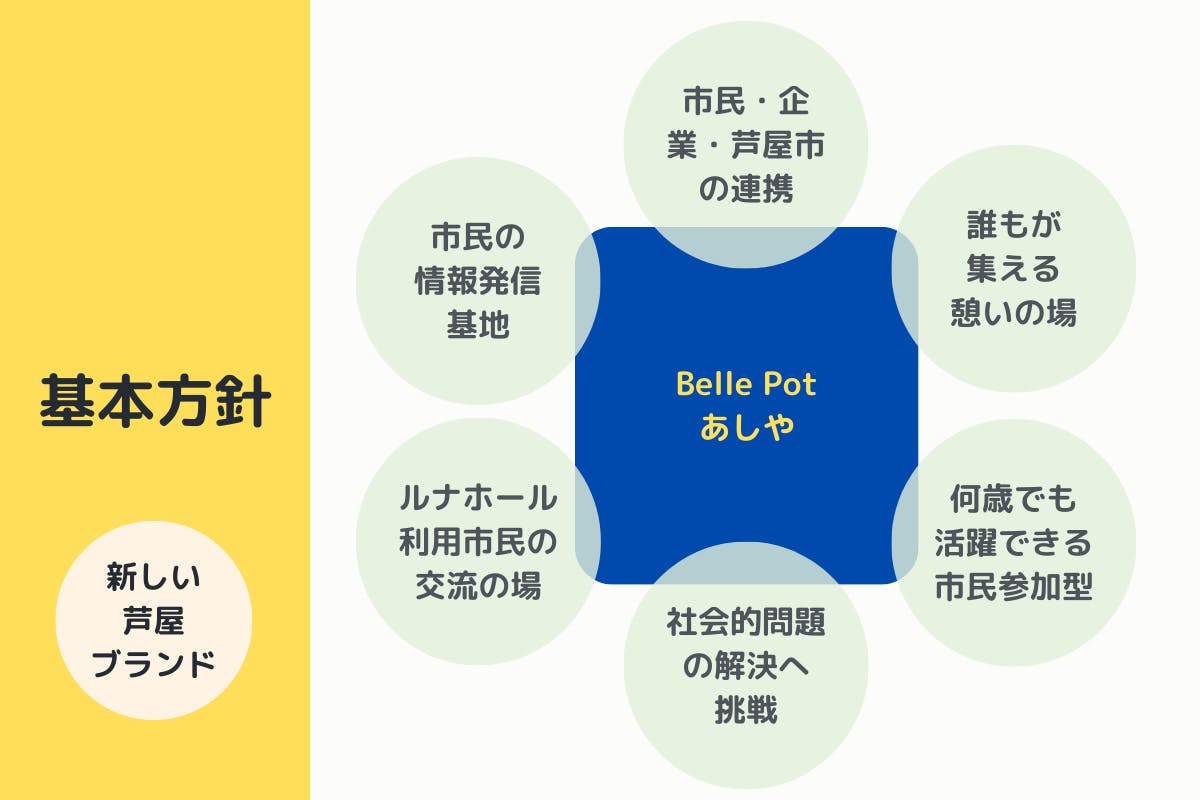 私たち市民が中心となって、新しい芦屋ブランドを作りたい。それが、【一般社団法人ブランディング芦屋】の願いです。私たちは、ここ【Belle Pot あしや】を先駆けに「誰もがいきいき活躍できる街」を目指し、歩みを進めていきたいと思っています。