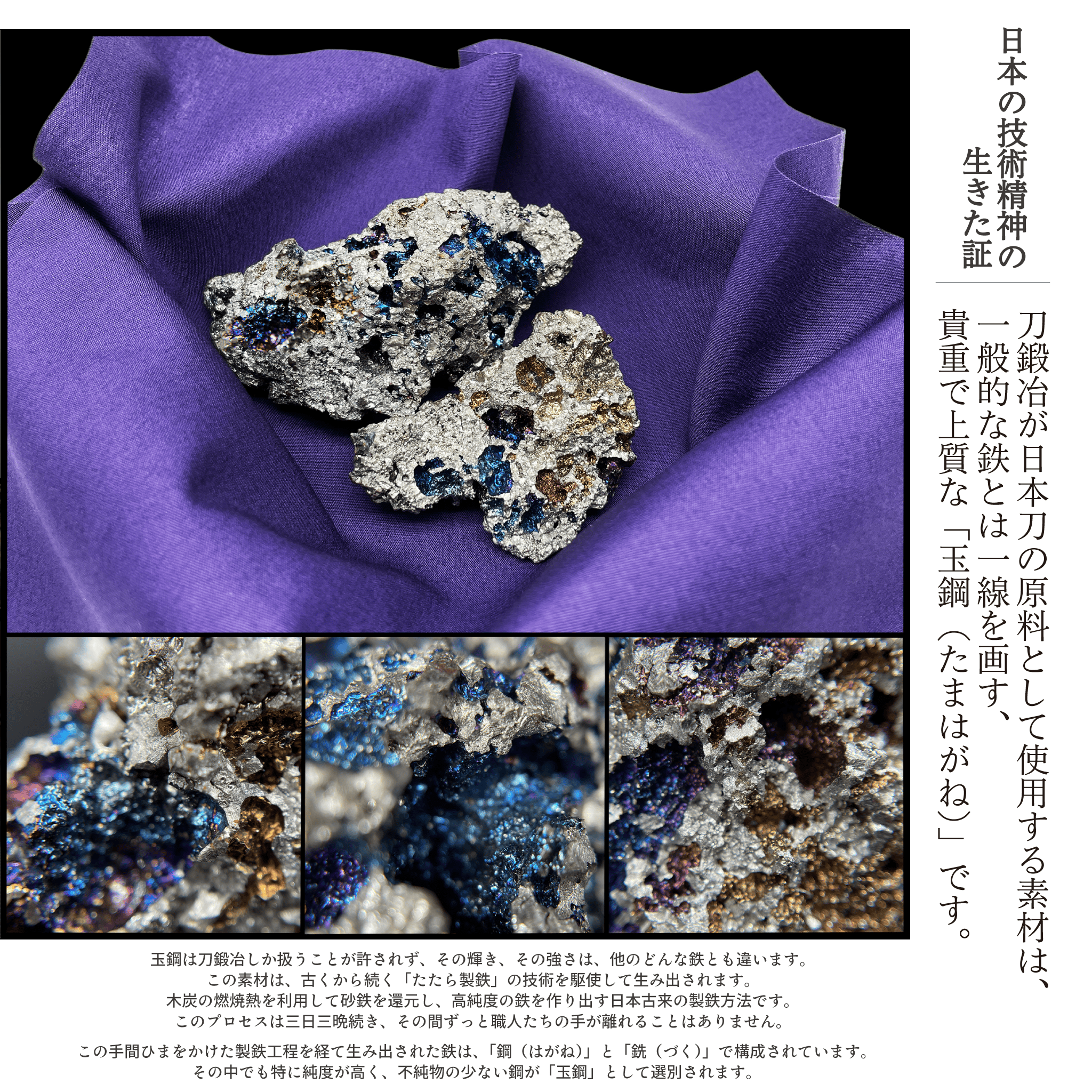 この素材は刀鍛冶しか扱うことが許されず、その輝き、その強さは、他のどんな鉄とも違います。