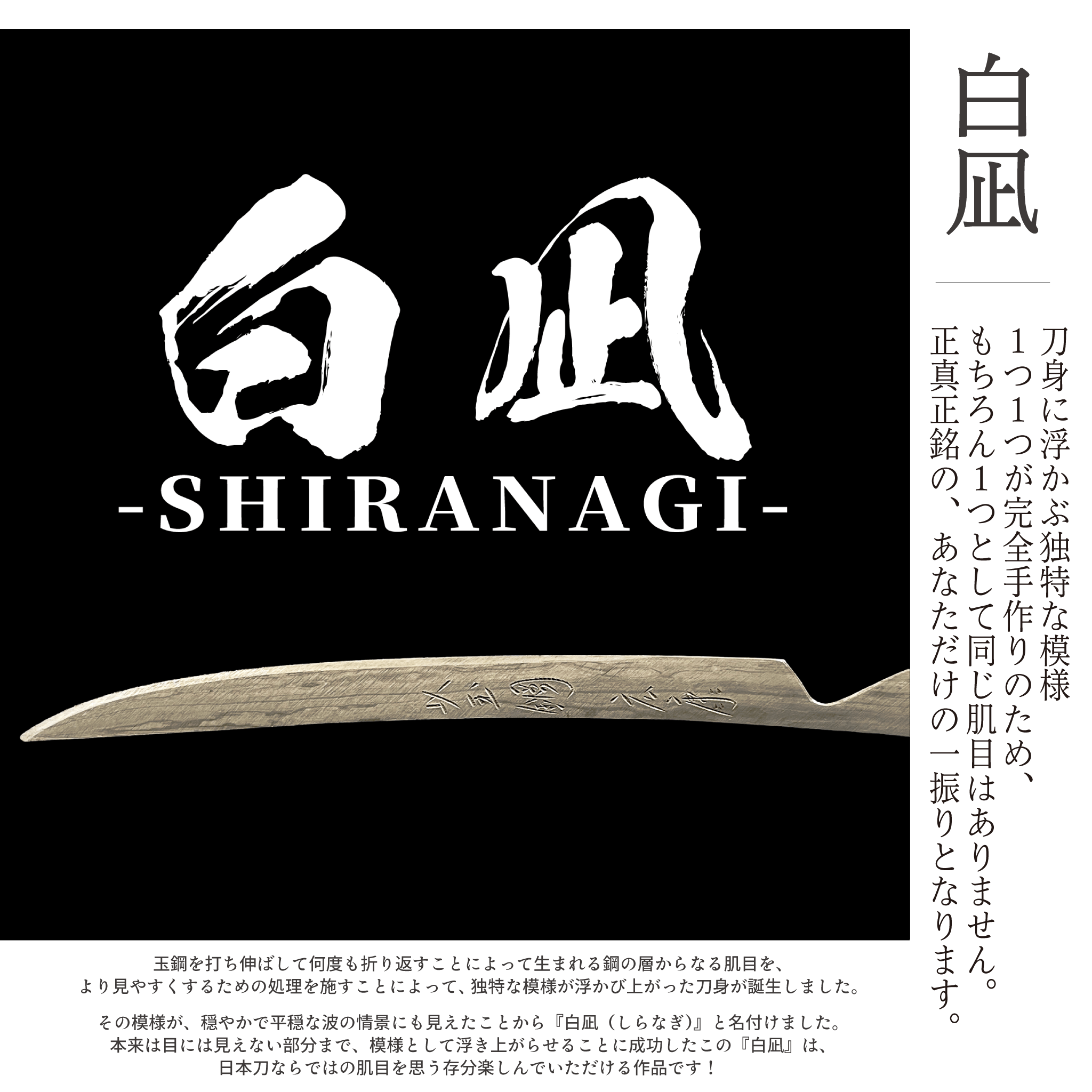 本来は目には見えない部分まで、模様として浮き上がらせることに成功したこの『白凪』は、日本刀ならではの肌目を思う存分楽しんでいただける作品です!