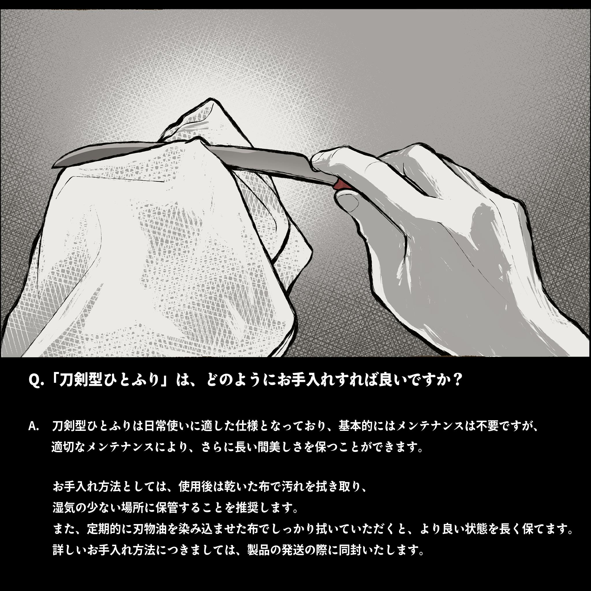 A.刀剣型ひとふりは日常使いに適した仕様となっており、基本的にはメンテナンスは不要ですが、