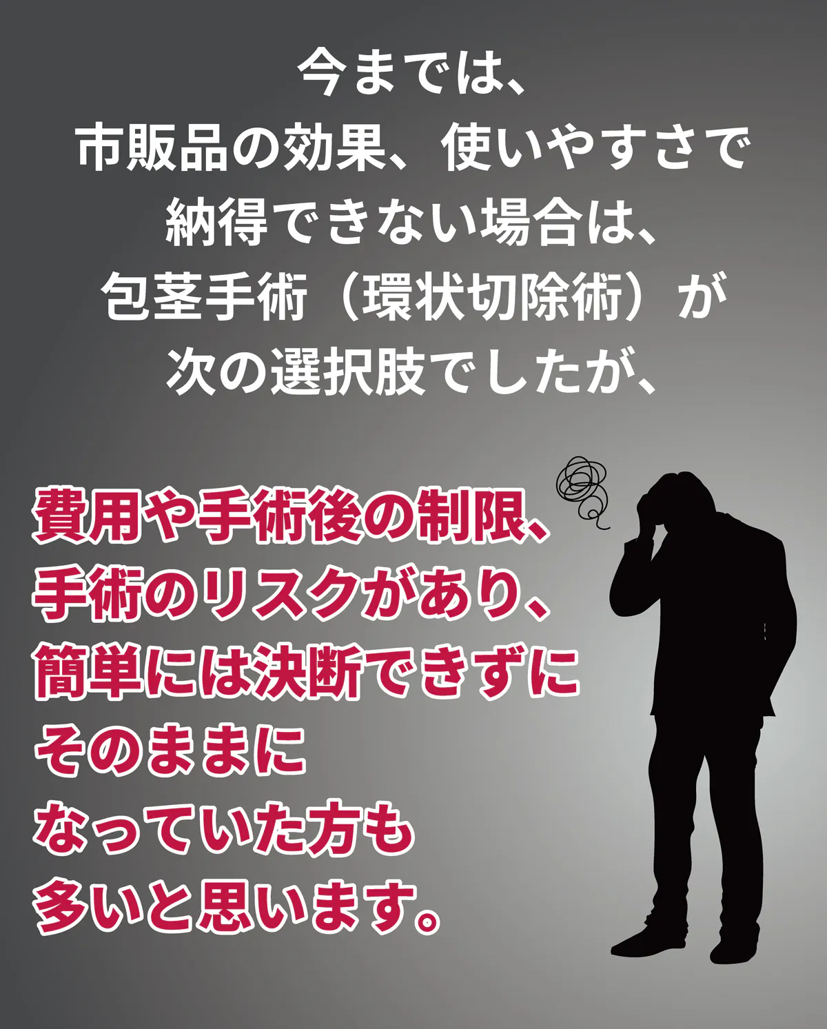 ペニレブは今までの包茎対策商品と手術の間に入る新たな選択肢として、