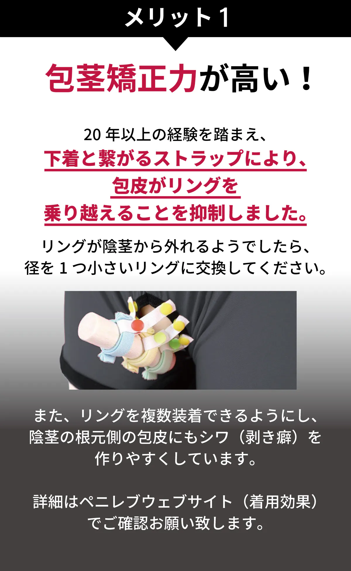 また、金属製で包皮口を広げるタイプの従来品や手術はやはり痛みを伴いますが、本製品は敏感な部分も痛くありません。