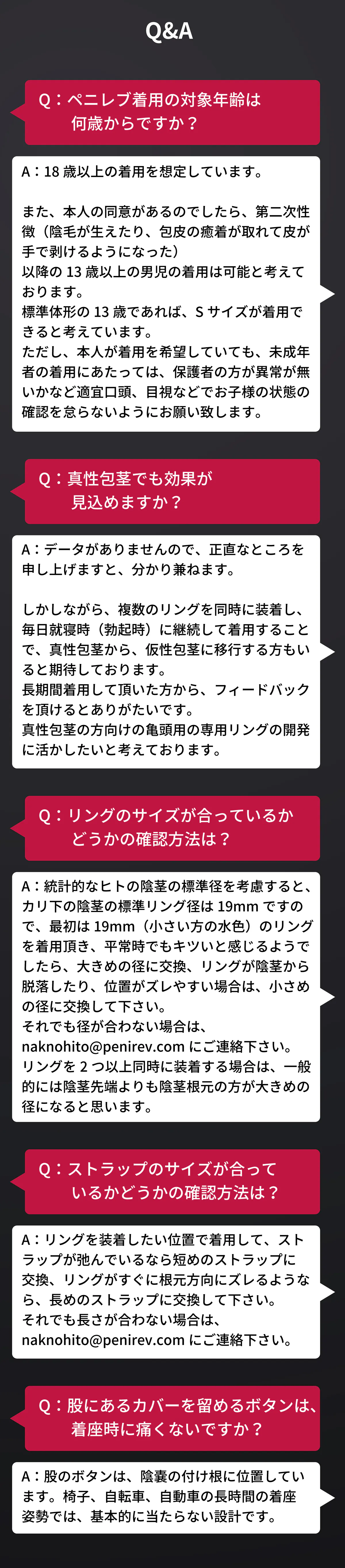 私自身、試作品やペニレブのサンプル品を何ヶ月も着用してきて、少なくとも仮性包茎には効果があると考えております。