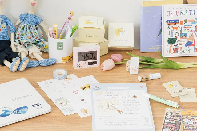 またボイスレコーダーにシールを貼ることで、文房具に馴染みやすいデザインにも。