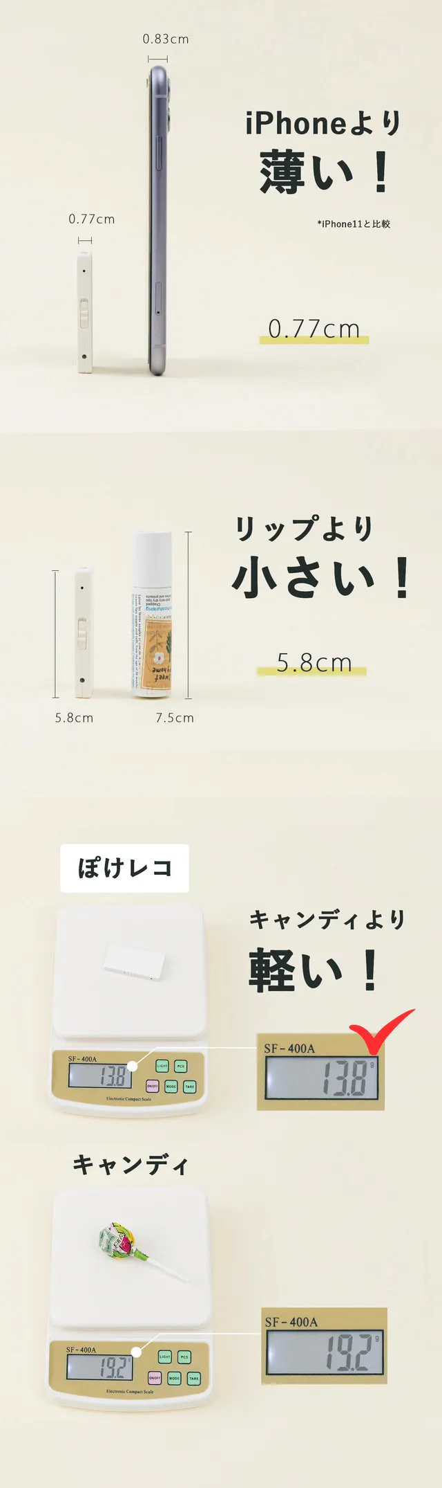 いつでも持ち運べる、薄くて軽い、"ぽけレコ"です。
