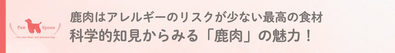 また、犬の祖先であるオオカミは、鹿を主食のひとつとして生きていました。進化生物学の観点でも、嗜好性が高く、犬と相性のよい食材と言えます。