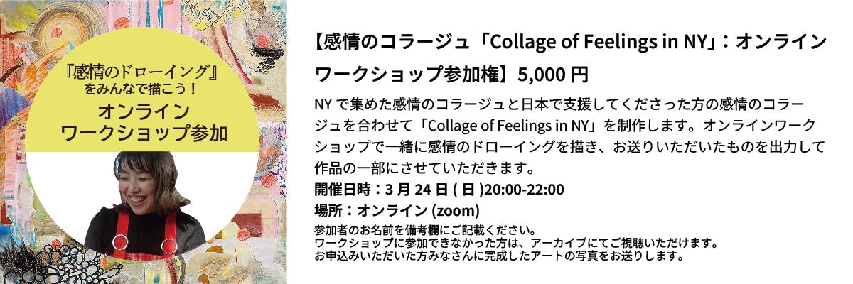 また、帰国後には「感情のワークショップ」をオンラインで開催し、今回のNYへの挑戦を見ることで、みなさまが感じた感情をドローイングにしていきます。