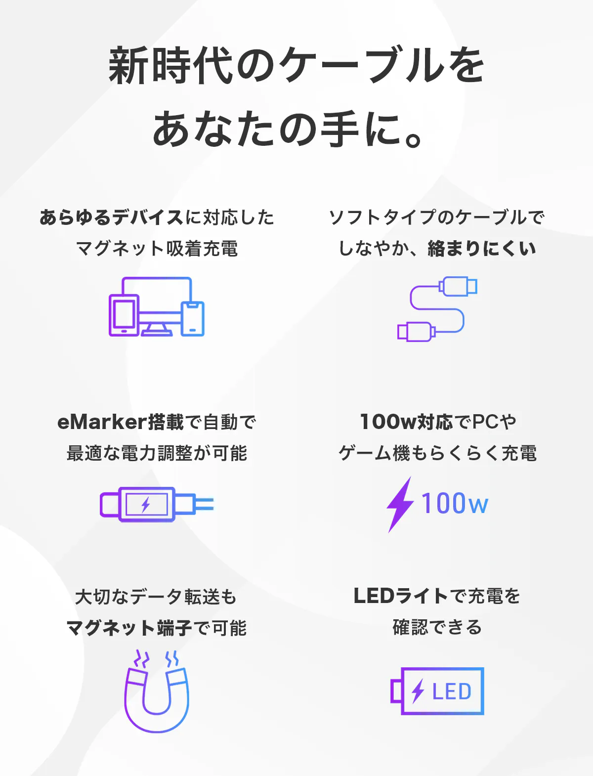 あらゆるデバイスの充電にこれ1本で。