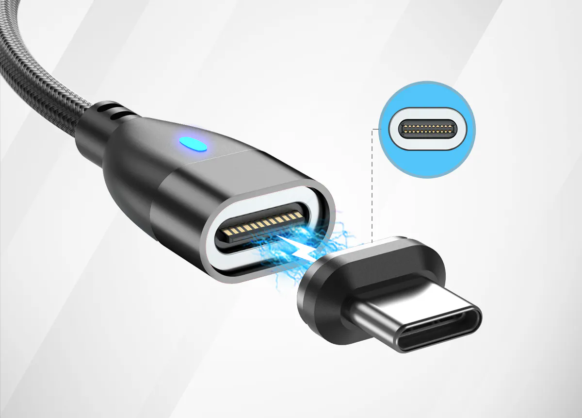 マグネット端子をデバイス本体に装着しておくことで、吸着充電。これ1本であらゆるデバイスを充電可能。ケーブルを区別して挿し込む手間がありません。