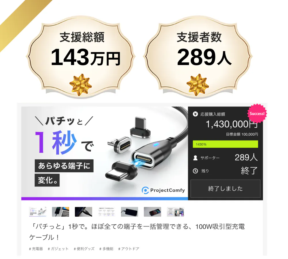 他クラファンサイトにて、大きな成功を納めました!