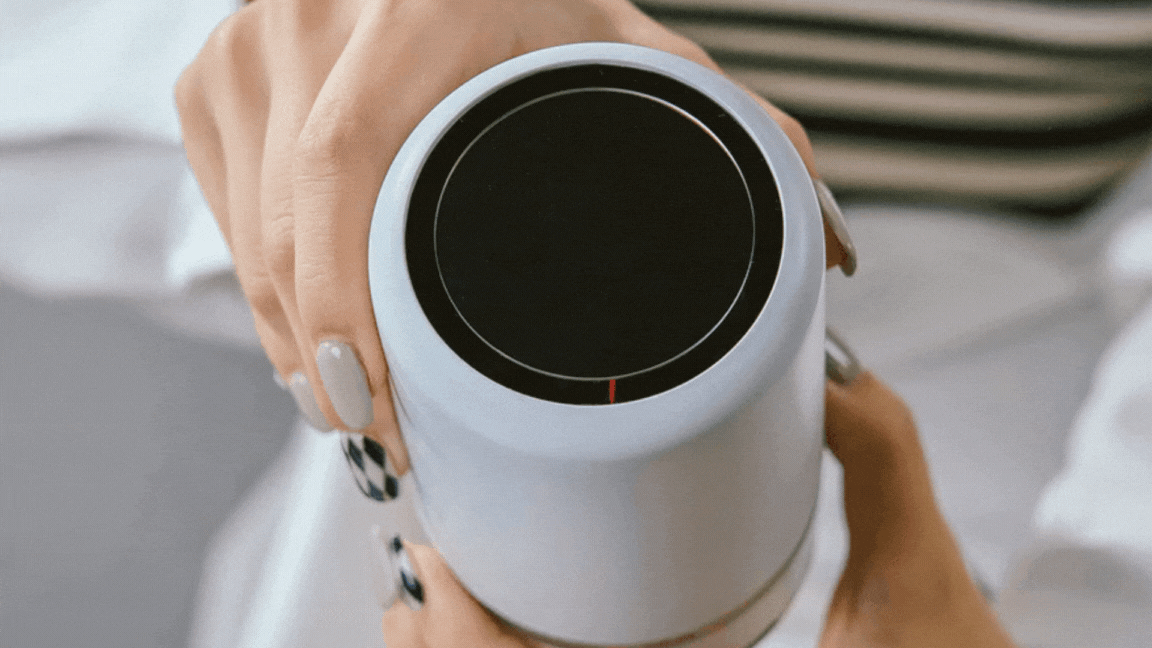 【AIRone】は、230gの軽量で350ml缶サイズのコンパクトさ。そのため、大型空気清浄機の機能と性能を手軽にどこへでも持ち運び、即座に利用することができます。移動時の持ち運びながらの利用や、特定の場所への設置、どちらの使い方も選べます。