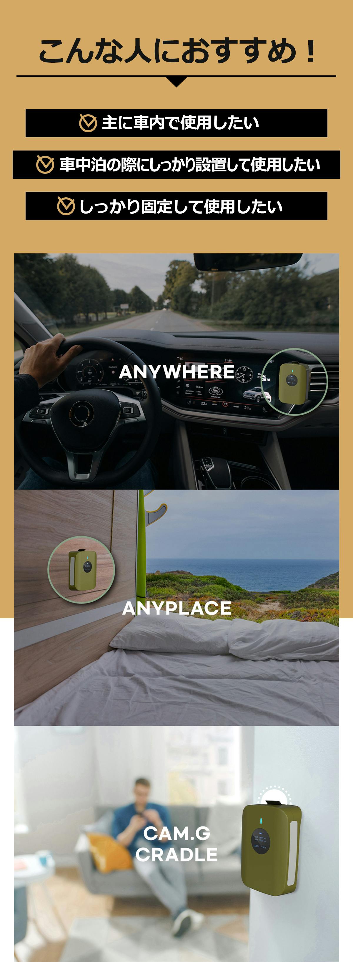 A、「Cam.G クレードル」は、マルチ警報器「Cam.G Field」を車内などに固定することができる専用マウントです。