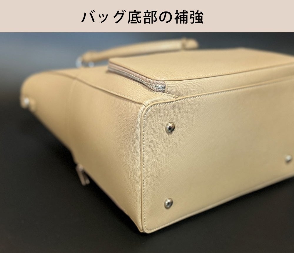 底部の四隅には底鋲を付け汚れやダメージからバッグを保護します。