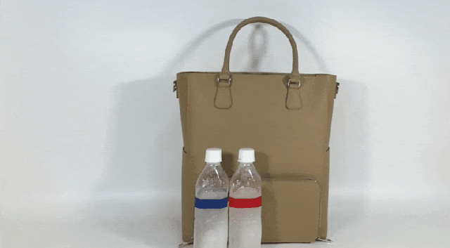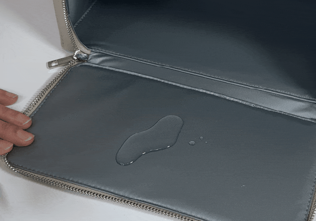 素材の特性上、ご覧のように水を弾くので、ワインなどバッグにこぼしてしまった時もサッと綺麗に拭き取れます。
