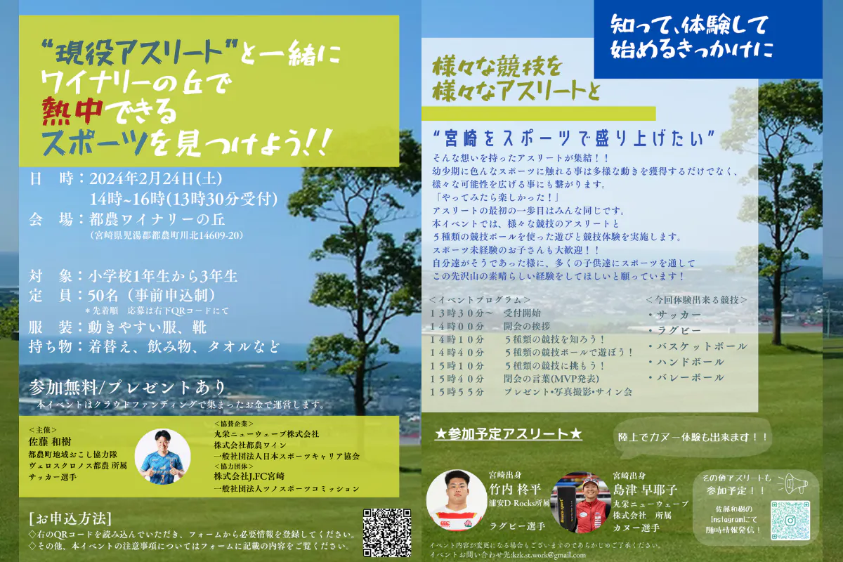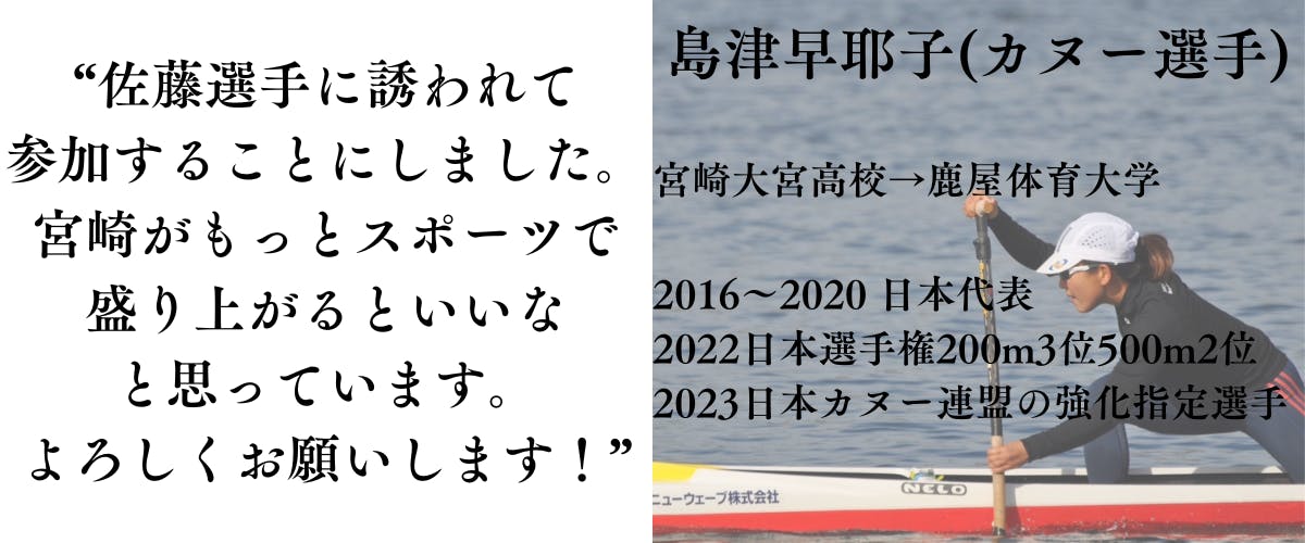 そしてこのイベントには、“宮崎をスポーツで盛り上げたい”という共通の想いを持った様々な競技のアスリートが集結します!(紹介は後ほど)