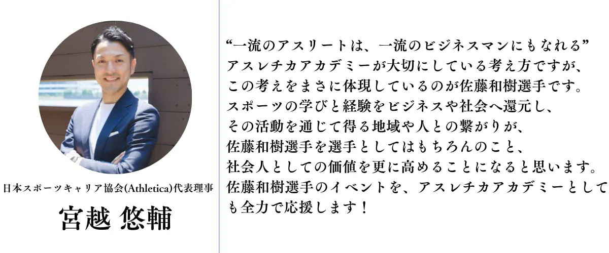 僕の想いを聞き、前向きに参加してくれるアスリートに感謝していますし、今回のイベントをきっかけに同じ想いを持ったアスリートが集まったことは僕自身すごく嬉しく思っています!