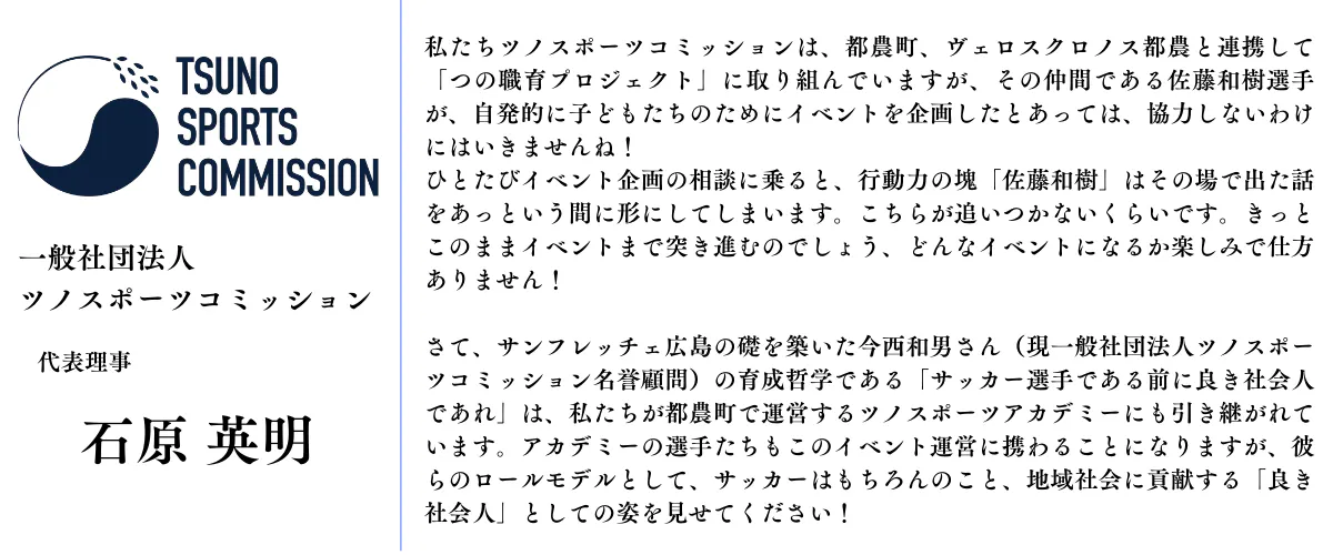 この機会に都農(つの)という町を覚えていただき、佐藤和樹とヴェロスクロノス都農を気にかけてくださると嬉しいです!
