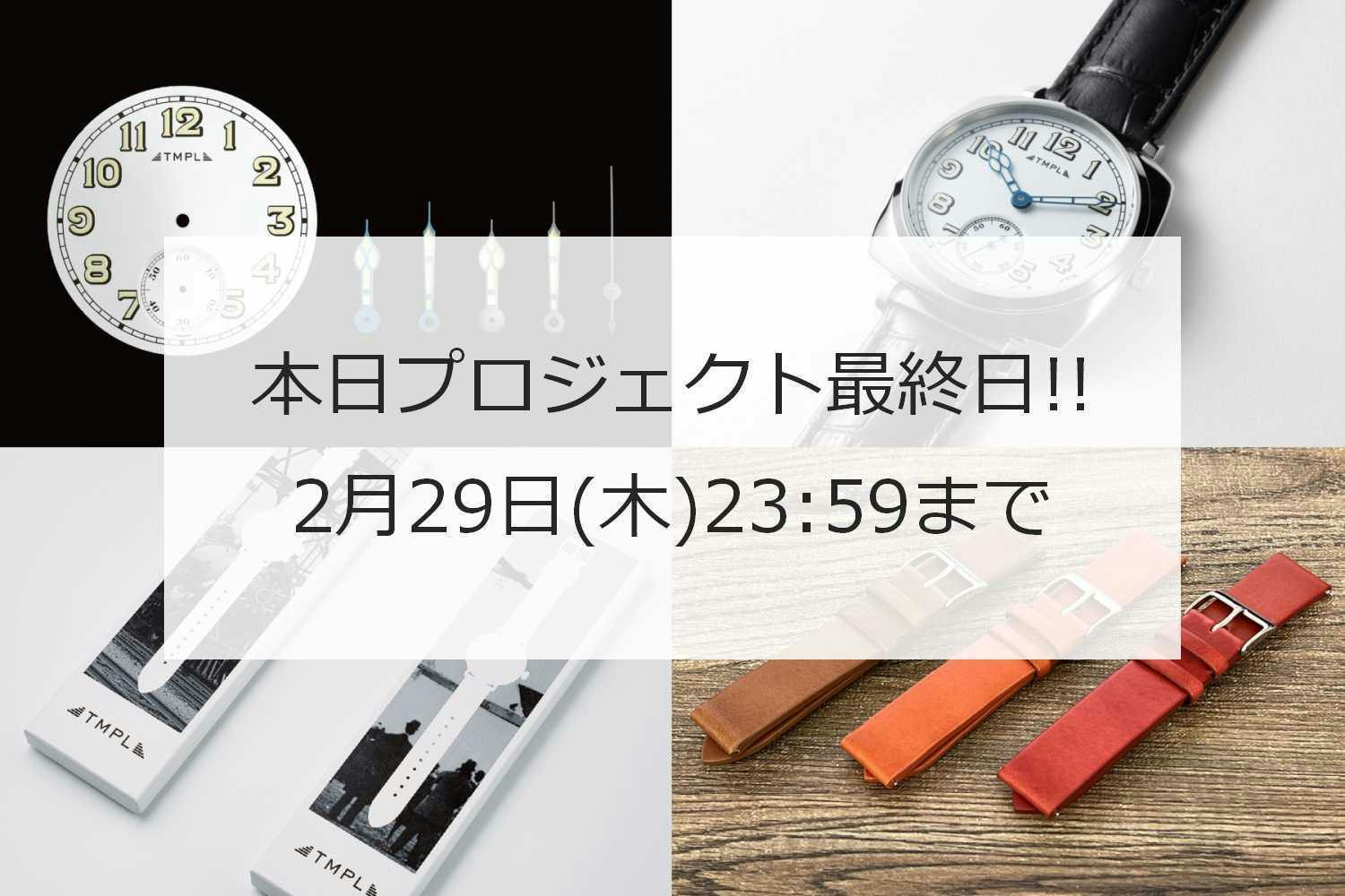 2024/02/29 11:39この度はTMPLのプロジェクトをご覧いただき誠にありがとうございます!いよいよ本日プロジェクト最終日となりました。数量限定のTMPL+カラーストラップのセットは、通常価格36,080円のところ、CAMPFIRE特別価格25,600円でご用意しています。ぜひこの機会にTMPLの腕時計をお手に取っていただければ幸いです。プロジェクトは本日23:59終了です!ぜひ最後までご支援のほどよろしくお願いいたします。 もっと見る