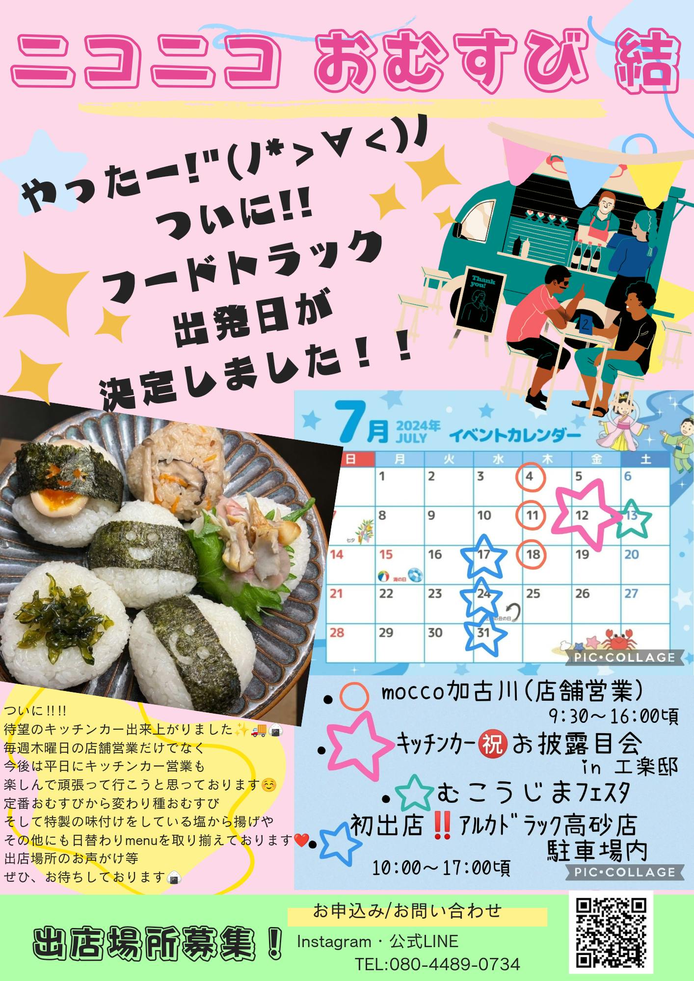 今後、出店できる場所を探しつつにはなりますが高砂の街をキッチンカーで回り、固定出店ができる場所に『ニコニコおむすび結』が来てる日だから行こう!集まろう!というきっかけになり