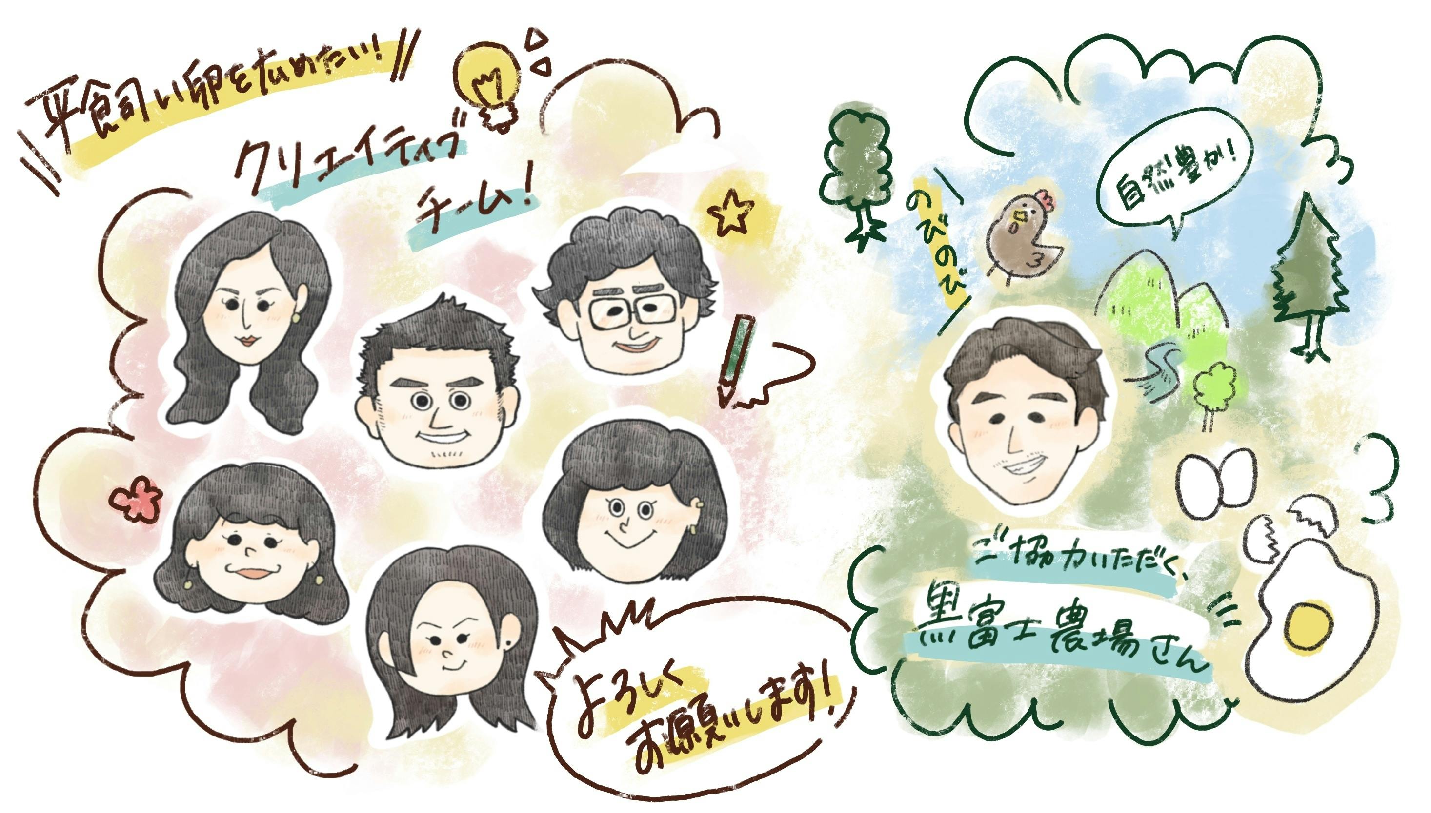 私たちは「平飼い卵を広めたい!」という思いのもと集まったとある広告会社の有志社員6名によるクリエイティブチームです。