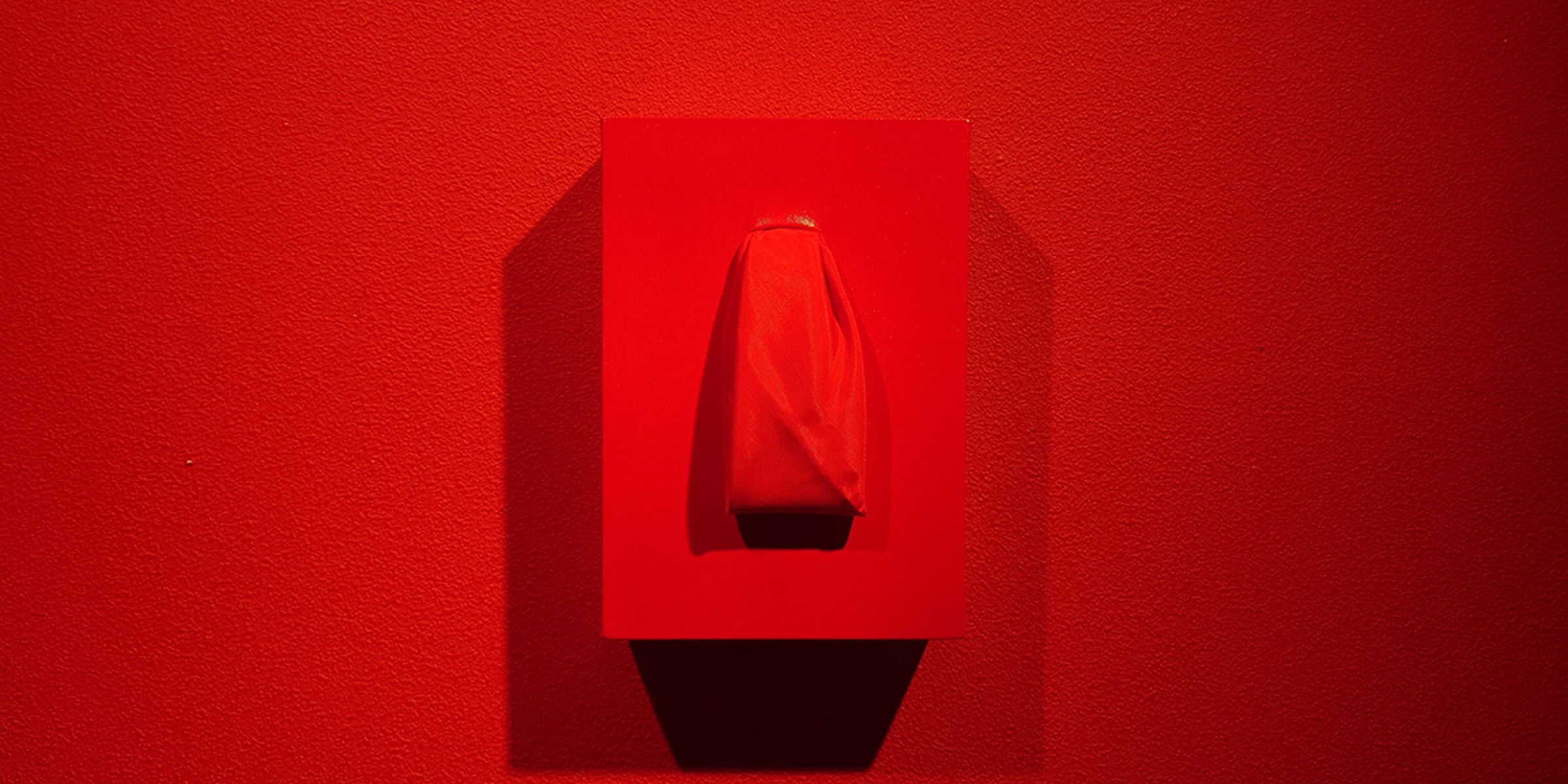 浜崎の代表的なパフォーマンス「Red Tea Ceremony(お茶会)」を作品として具現化。茶道に関連する三部作「丿健の三種の神’器」と題したシリーズの第三弾「SANCTIFY(袱紗)」です。