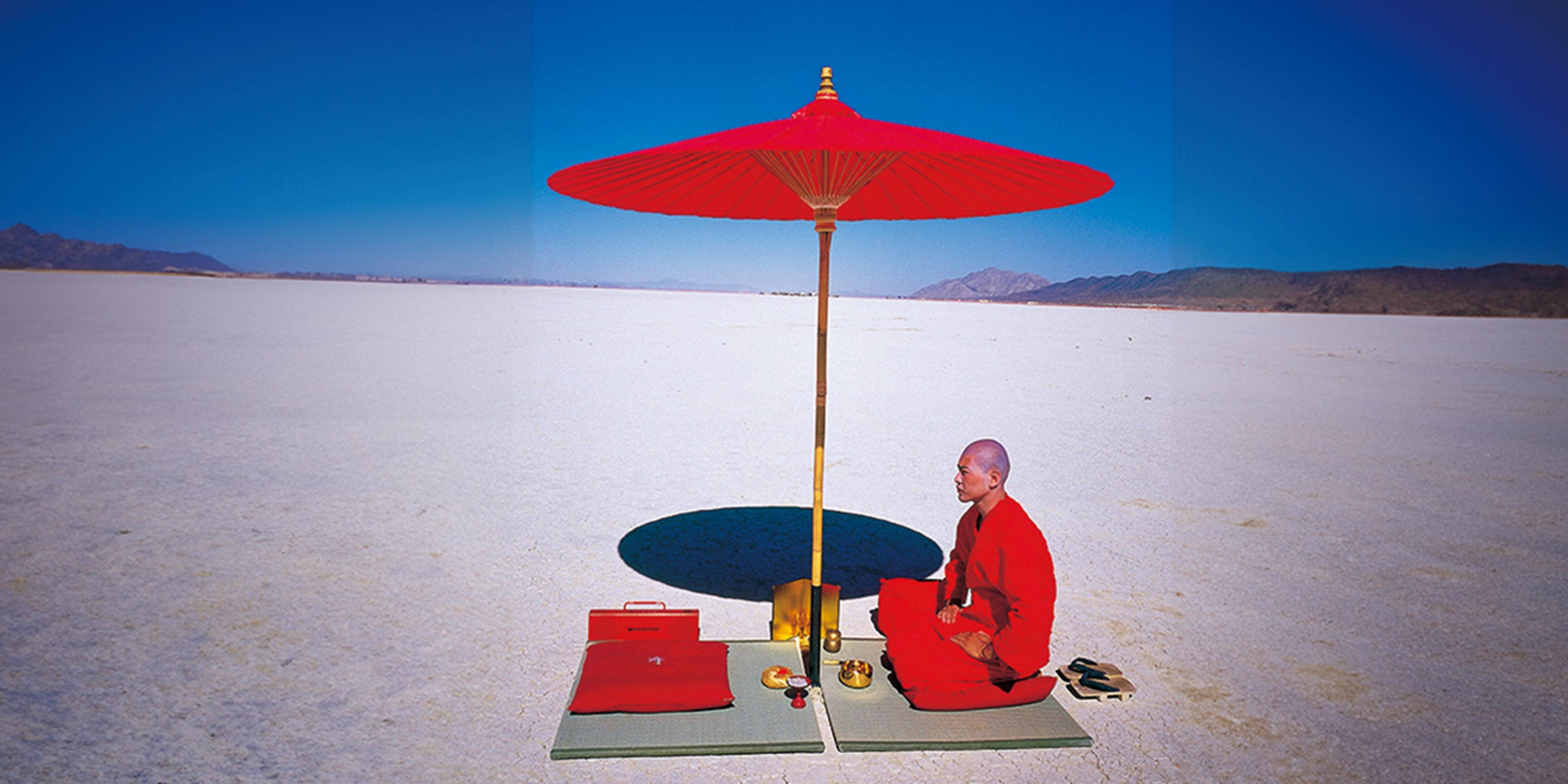 たたみ一畳と赤い和傘、金の茶碗を携えて世界中の様々な場所で「茶会」を催すパフォーマンスで、国内のみならず、ニューヨーク、パリ、イスラエルなどで茶会を催し、中でも毎年8月にネバダ州の砂漠で行われるアートフェス「バーニングマン」では、フェスの模様を紹介する各国メディアにおいても、メインビジュアルとして取り上げられるなど、アイコン的な存在として知られています。