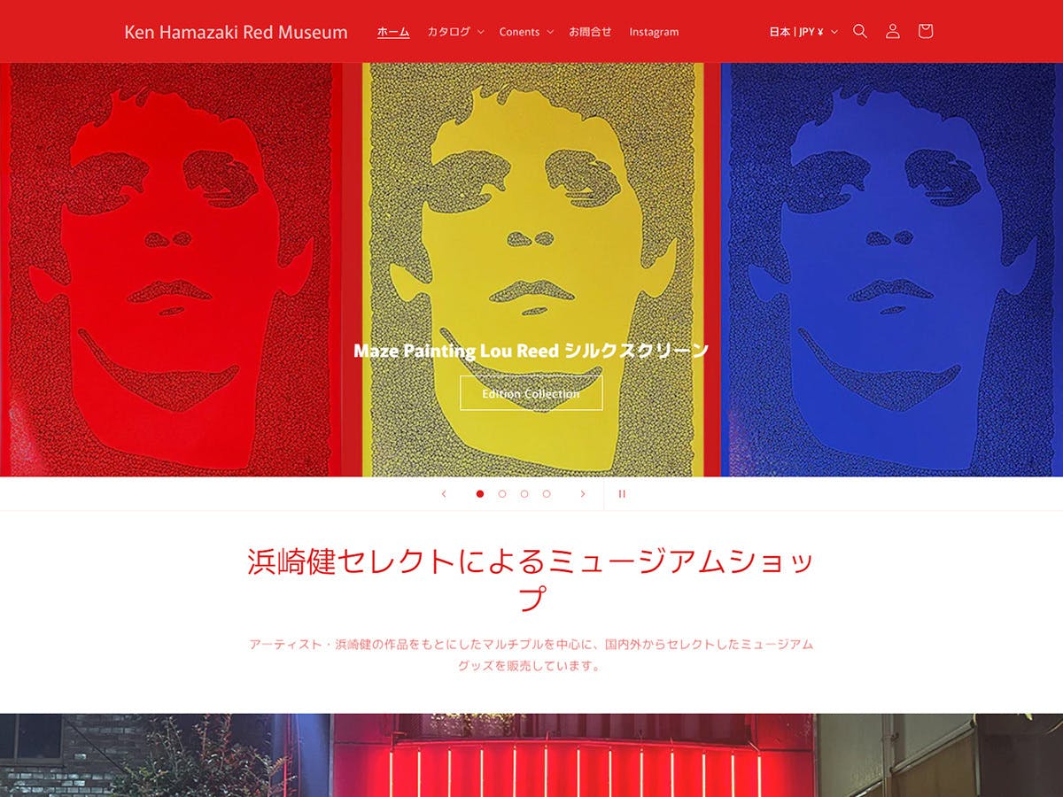 2024/12/02 17:00Ken Hamazaki Red Museumhttps://redmuseum.jp/アーティスト・浜崎健のセレクトによるミュージアムショップです。浜崎の作品をプリントしたTシャツを中心としたアパレルや、作品をモチーフにしたマルチプル、浜崎のオリジナル作品も揃っています。また、In Flight Paintingで世界中をアトリエにする浜崎が、各国のギャラリーやミュージアムショップで見つけた、ポスターやミュージアムグッズなど、浜崎のキュレーションによるグッズを取り揃えています。 もっと見る