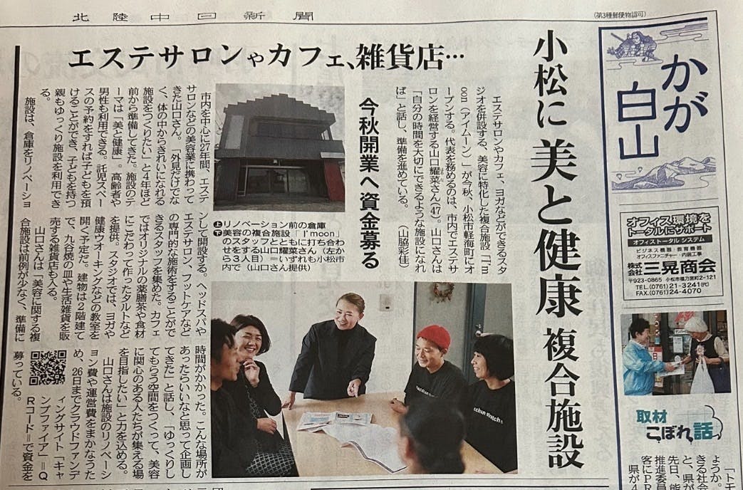 2024年夏、市内の古い倉庫をリノベーションし、店名をI'moon と改め、美と健康のプロフェッショナルが集結し新たなスタートを切る計画です。