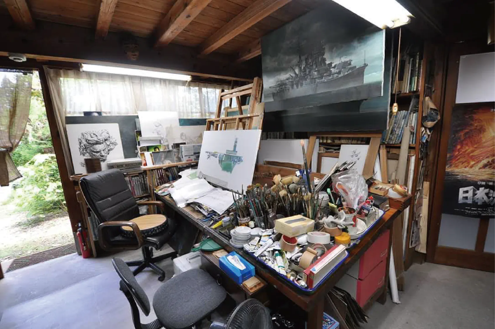 それにしても、生賴範義氏は様々なものを描きあげてきた。美女や侍は勿論のこと、軍艦、果ては宇宙まで。写真、百科事典など多くの資料を可能な限り集めた。全ては作品のために。