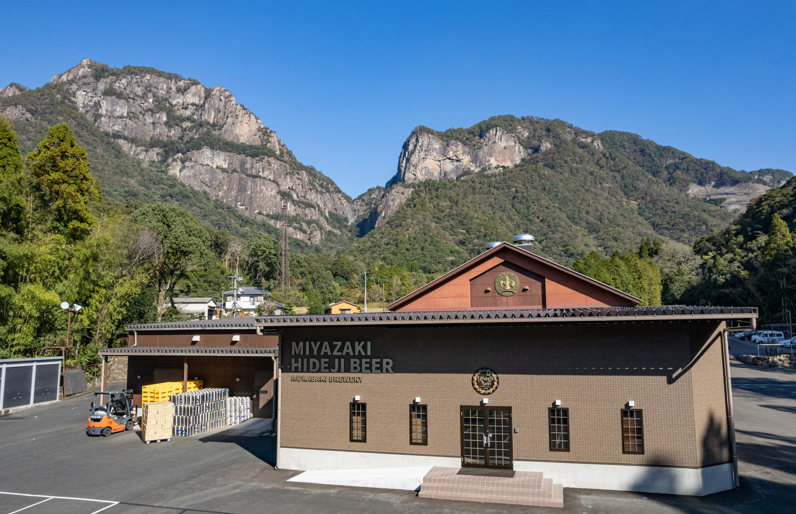 宮崎県の北部、祖母傾(そぼかたむき)国定公園 行縢山(むかばき山)の麓に位置し、自然豊かな環境で、上質な天然水とフレッシュな自家培養酵母を使用した商品造りを行っている『宮崎ひでじビール』