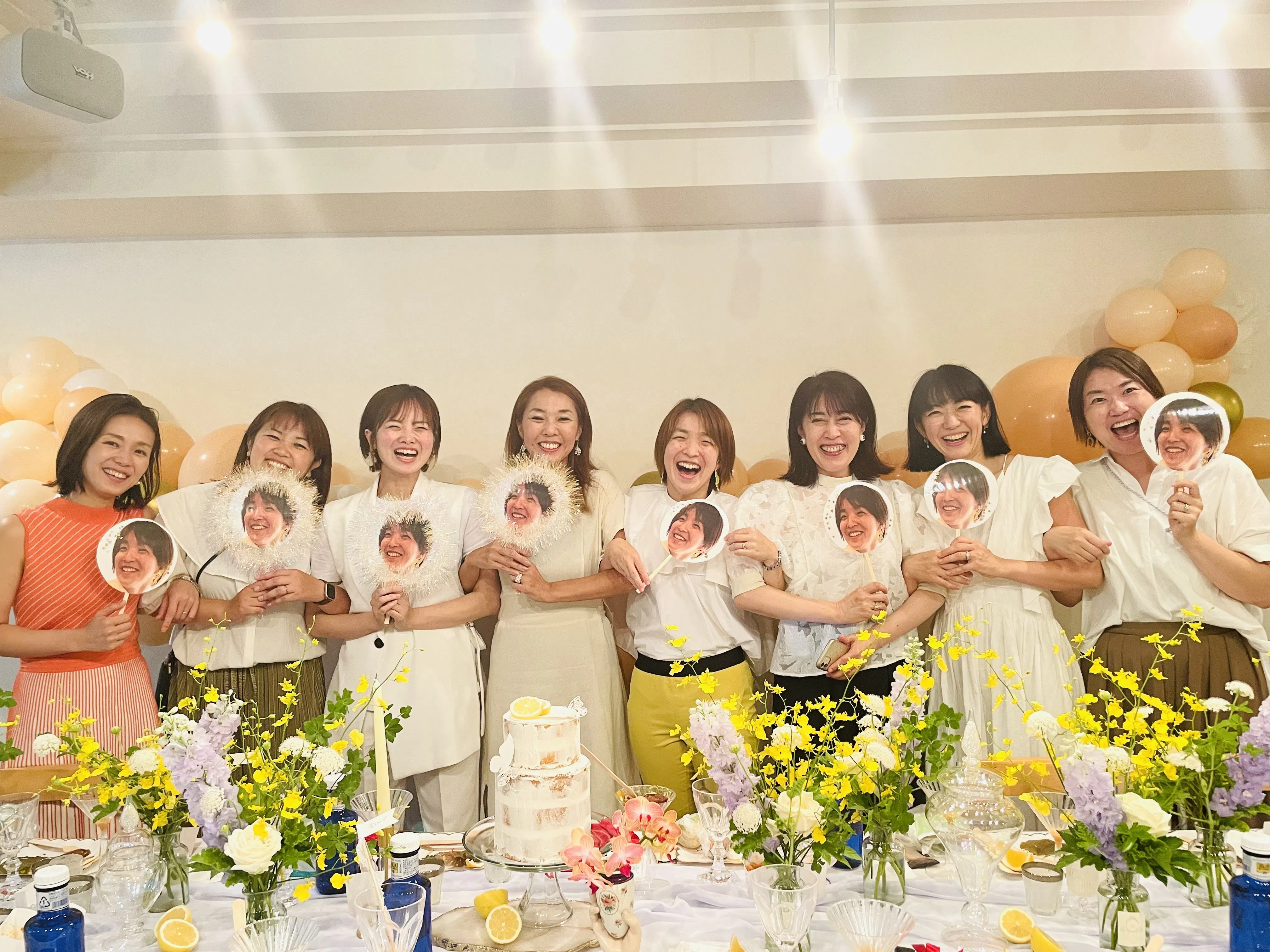 (ビジネス講座終了時のランチ会。田村のうちわを作ってくれました)