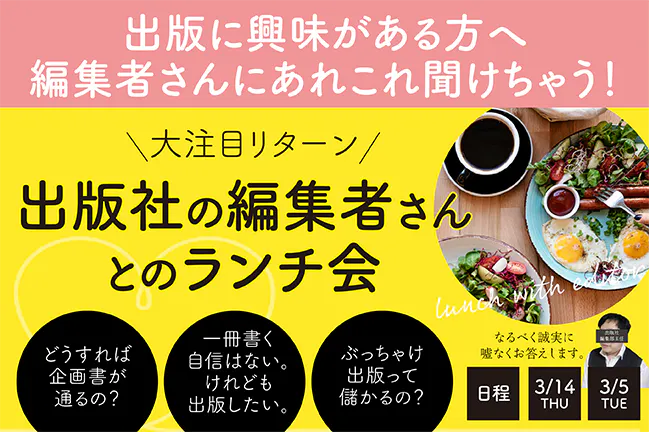 現役編集者に出版のアレコレをなんでも聞けちゃう!激レアなランチ会です。