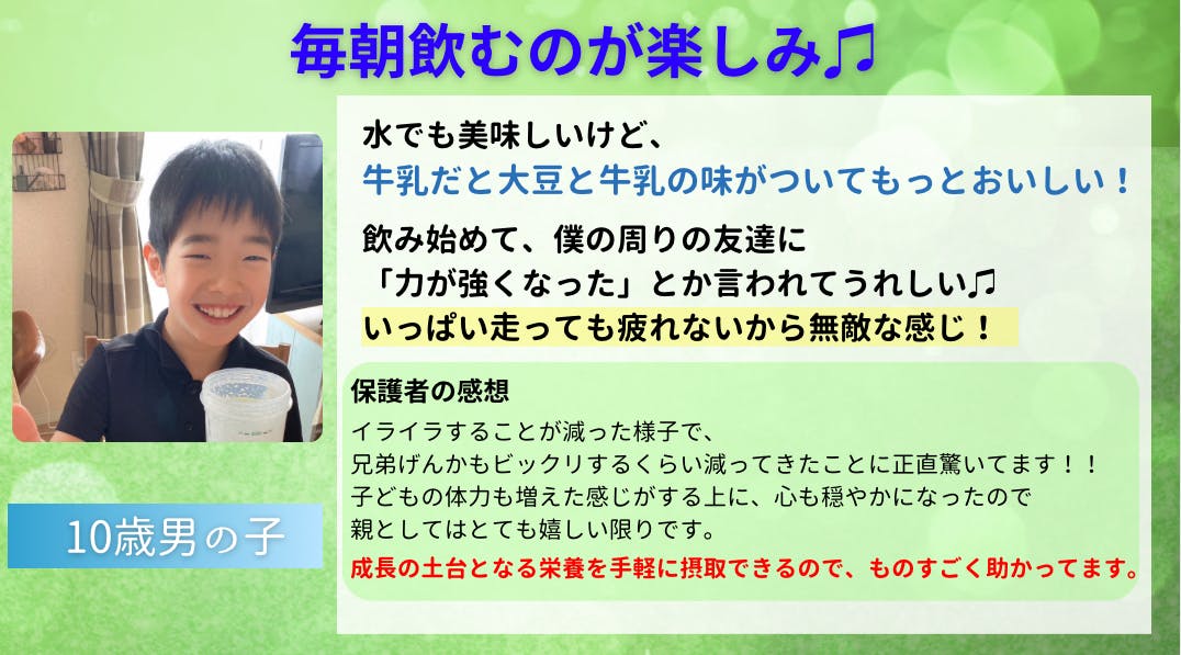 子育て中のお母さんにはもちろんのこと、成長過程にある大切な時期に、良質なたんぱく質を摂取することはとても大事。