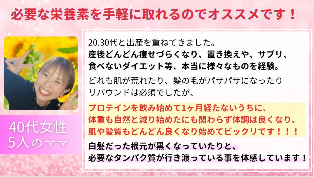 そして、本来はプロテインとはタンパク質のことであり、女性と子どもにこそ本当は必要なんです!!!