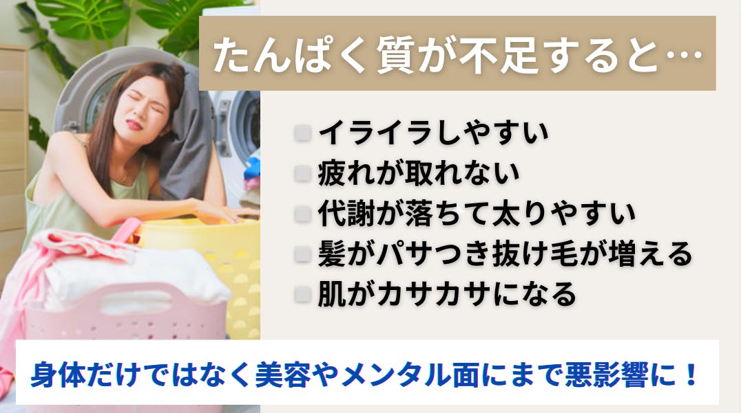 つまり、いつまでも若々しく、心身ともに安定した美しさを保つためには『プロテイン(たんぱく質)』が重要なのです。