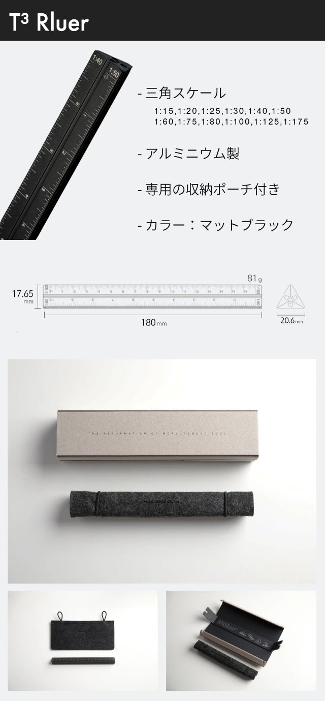 T³ Rulerは、3本のルーラーが磁石によって1本になっている三角スケールです。
